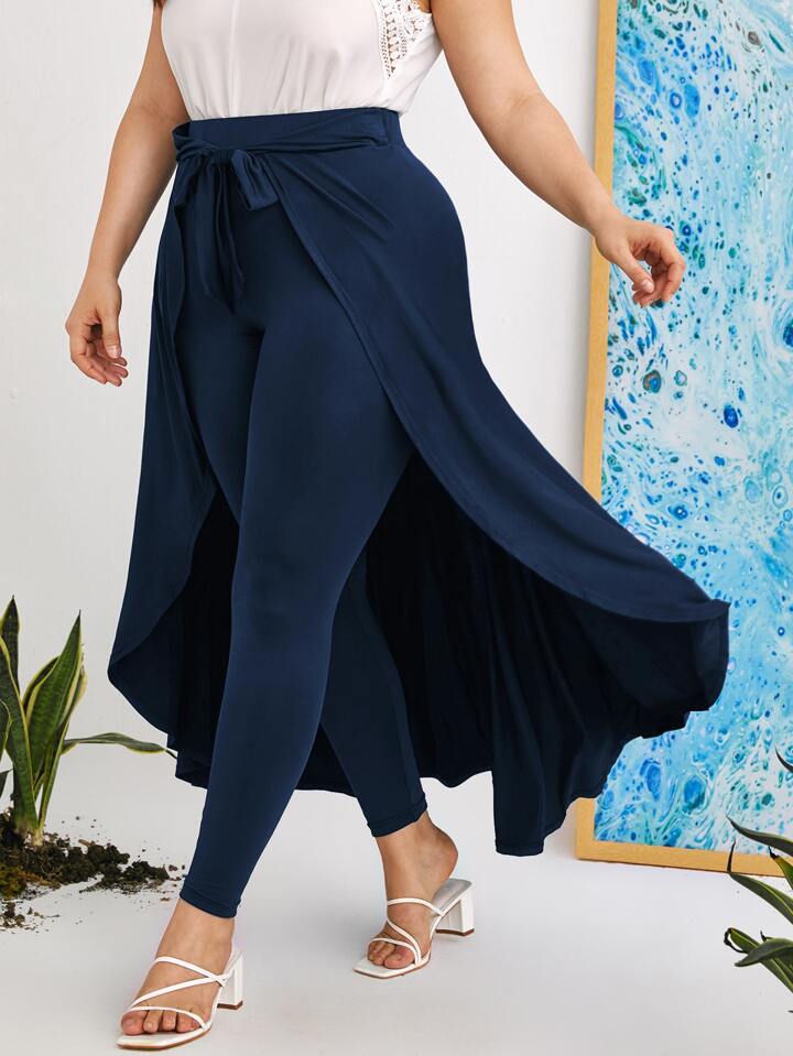 Plus High Waist Long Palazzo Overlay Skirt Pants