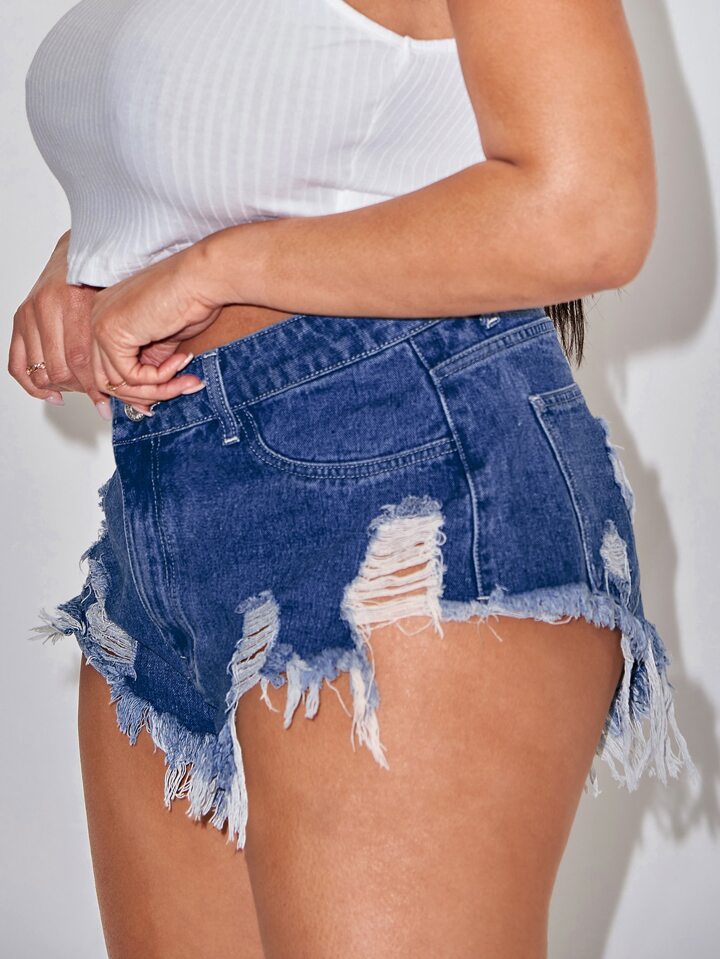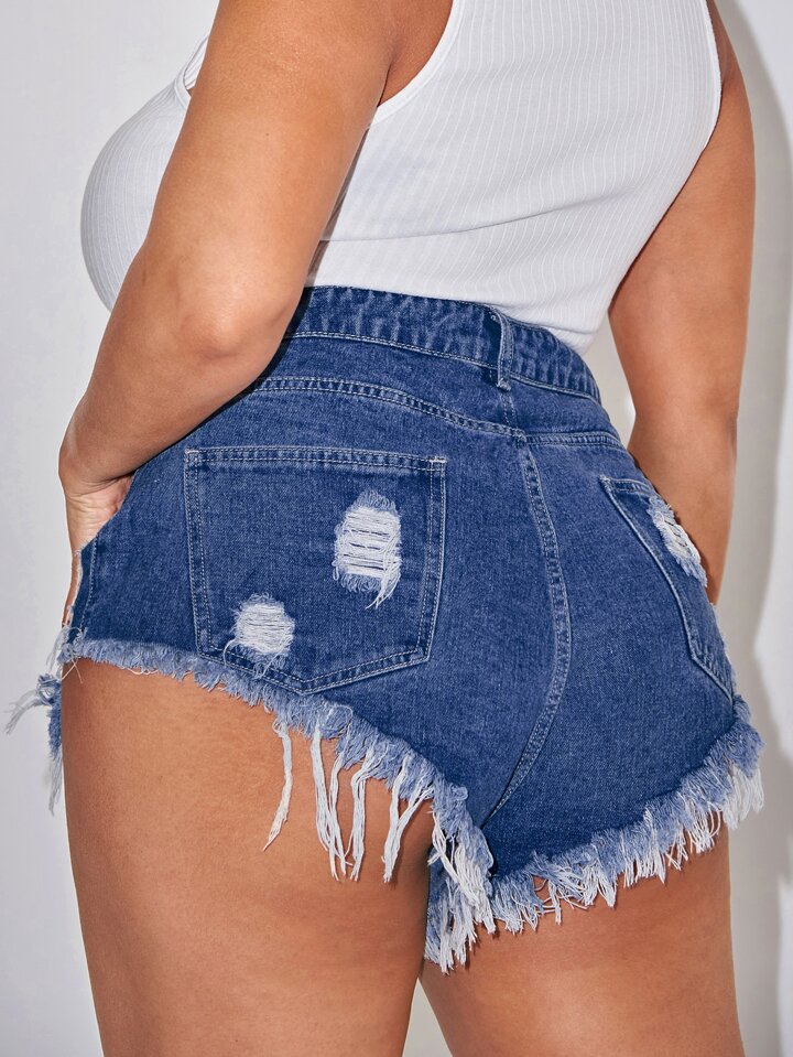 Plus High Waist Ripped Raw Hem Denim Shorts