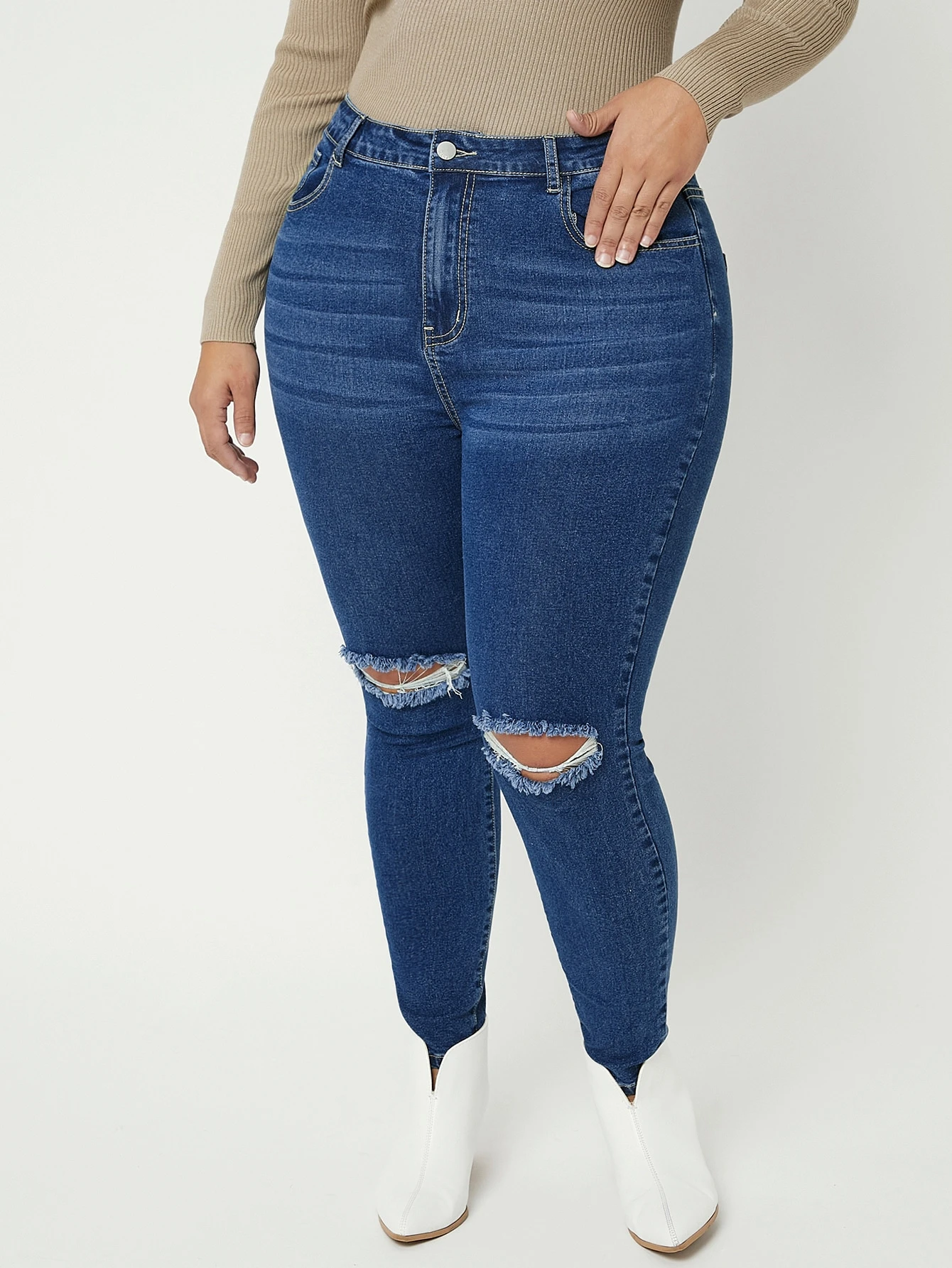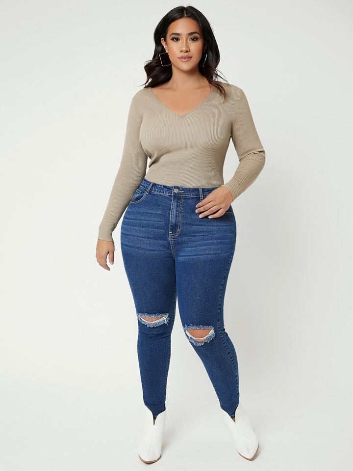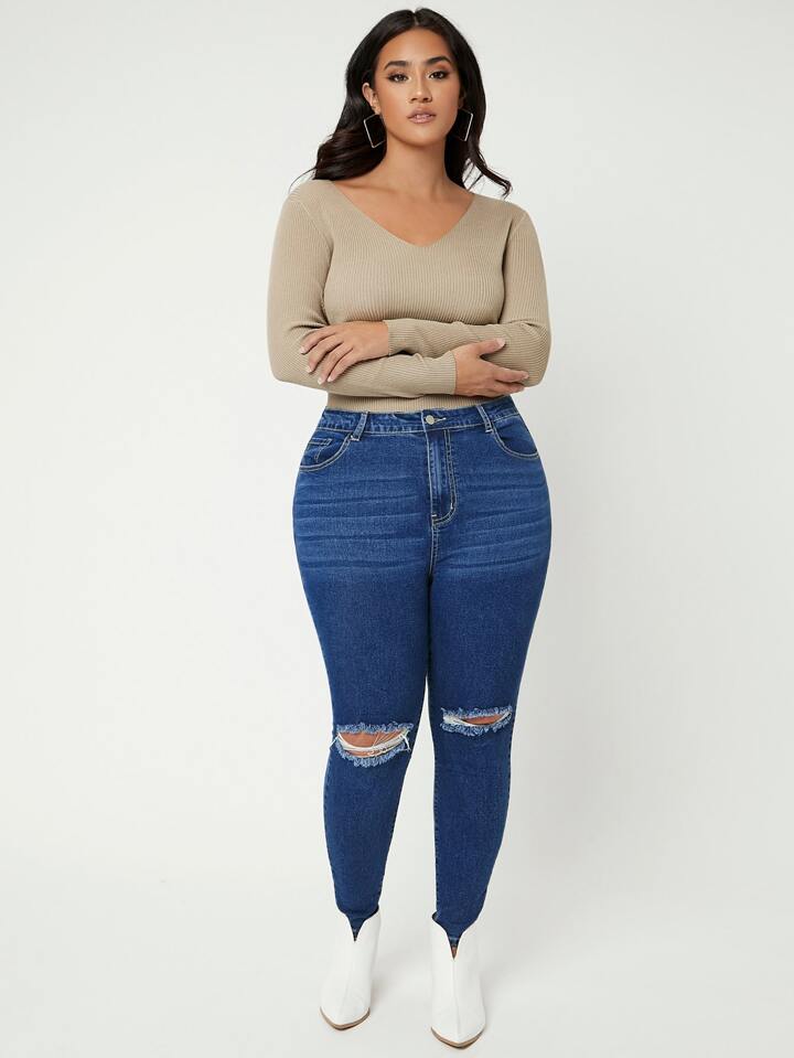 Plus High Waist Ripped Skinny Jeans