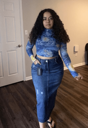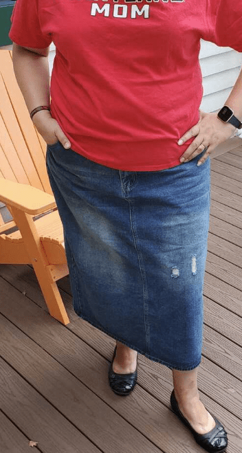 Plus High Waist Ripped Slit Back Denim Skirt