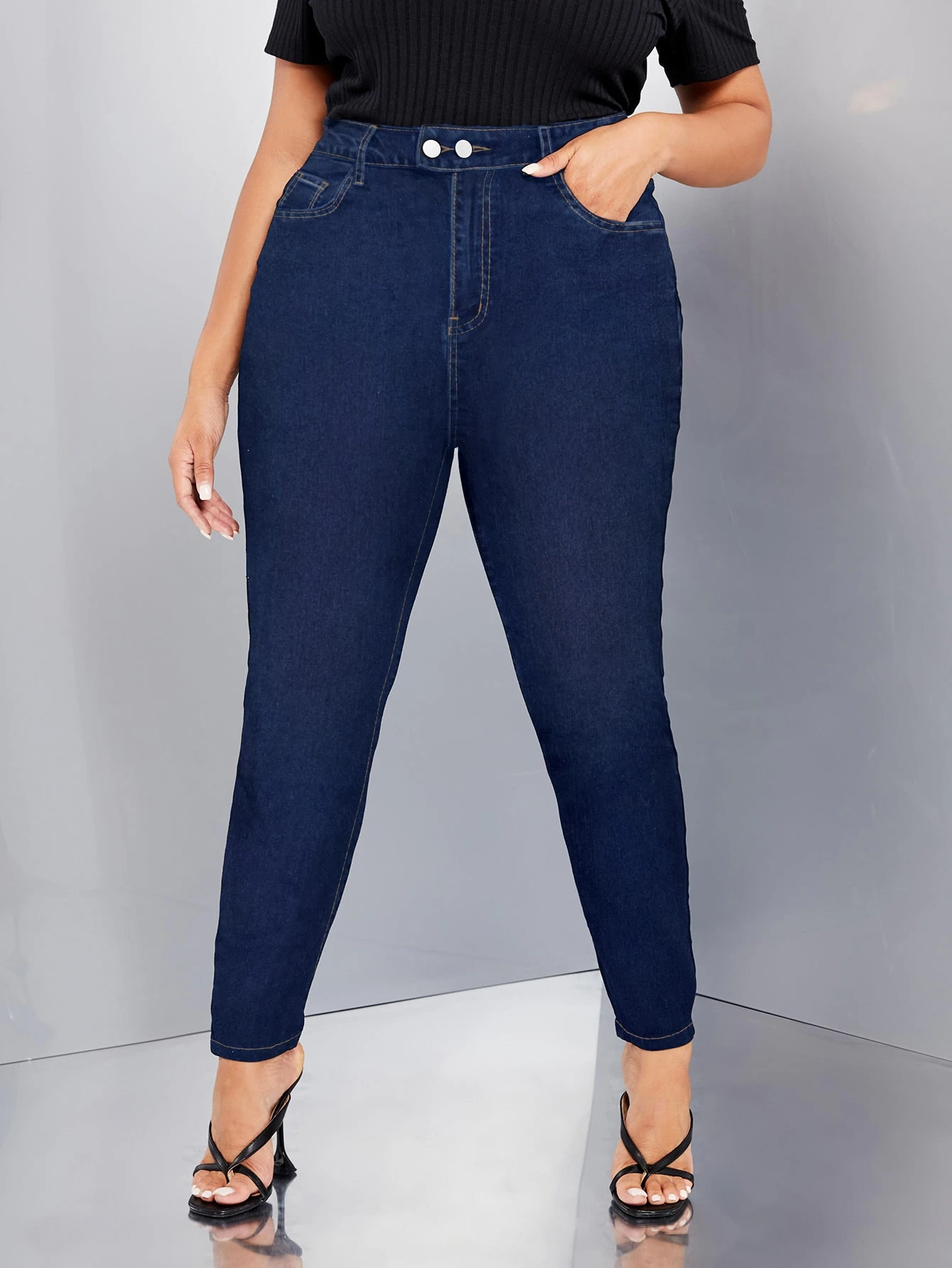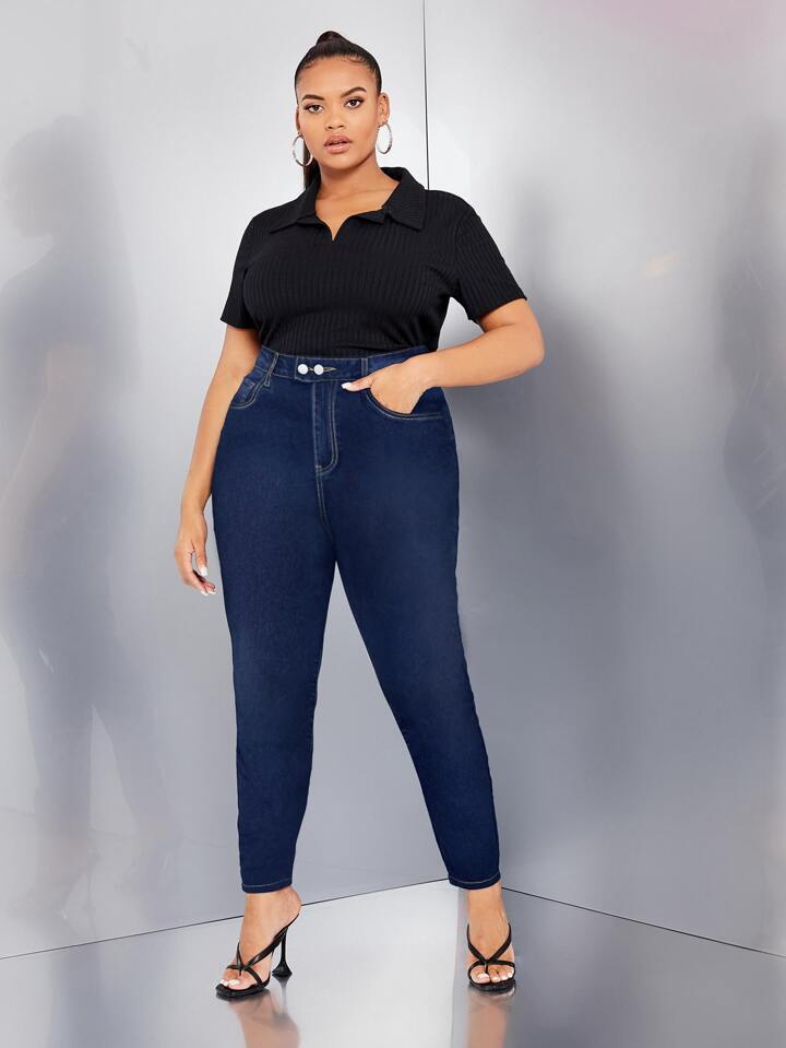 Plus High Waist Slant Pocket Skinny Jeans