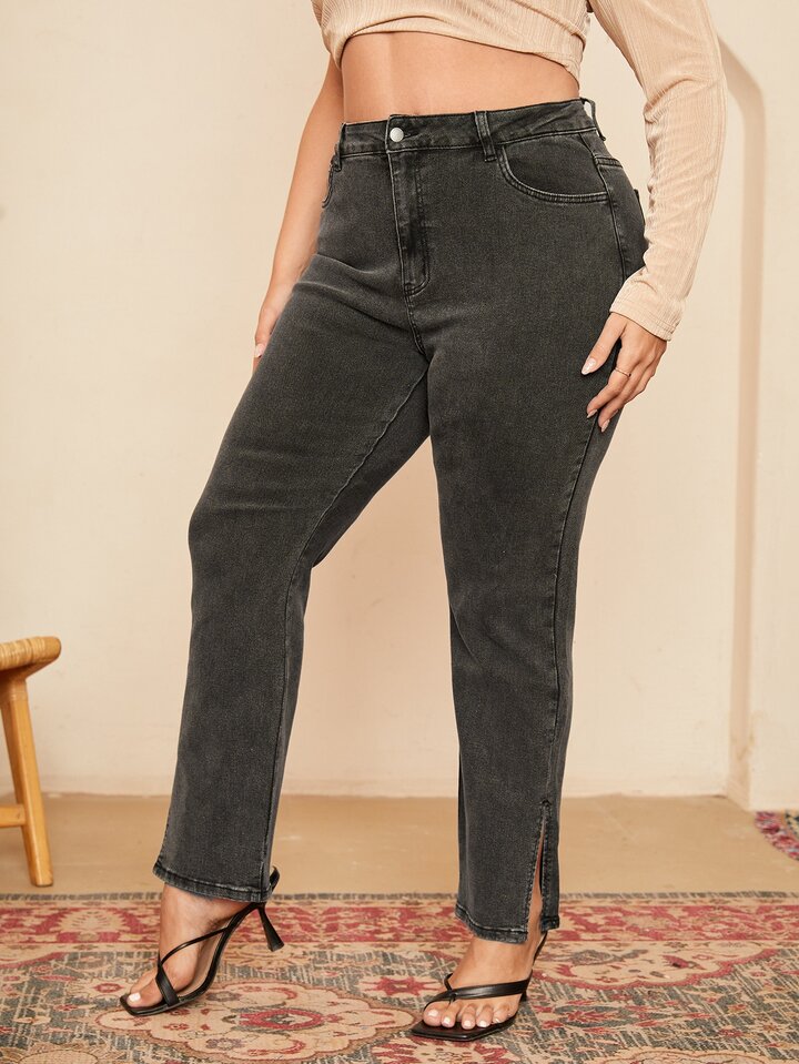 Plus High Waist Slit Hem Boot-cut Leg Jeans