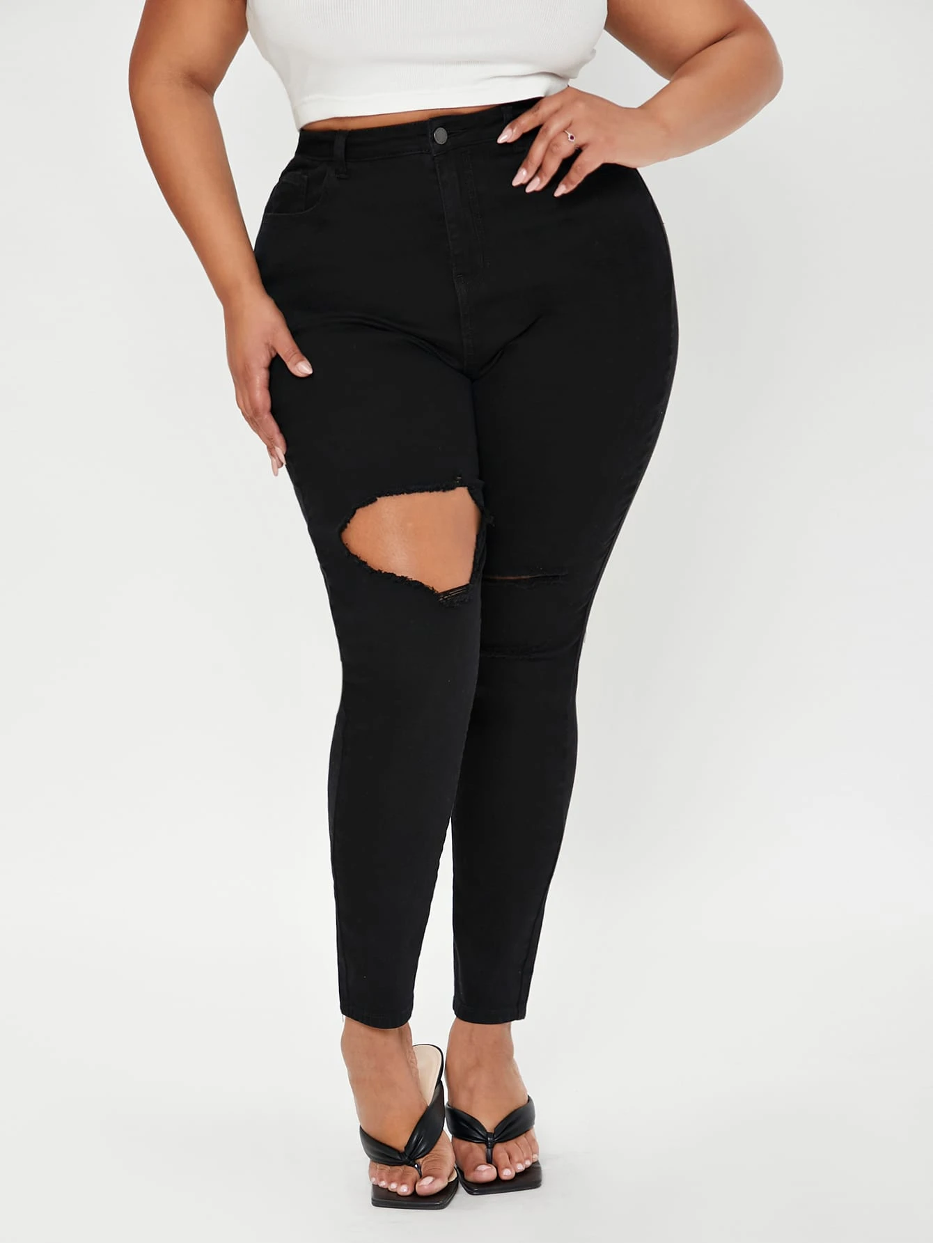 Plus High Waist Solid Cut Out Skinny Jeans