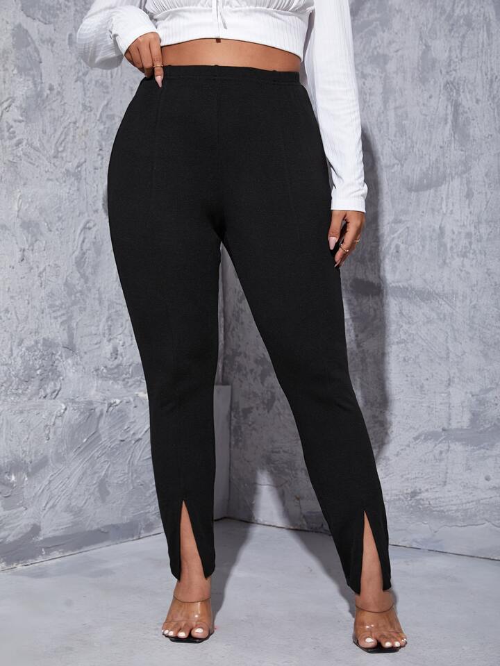 Plus High Waist Split Hem Skinny Pants