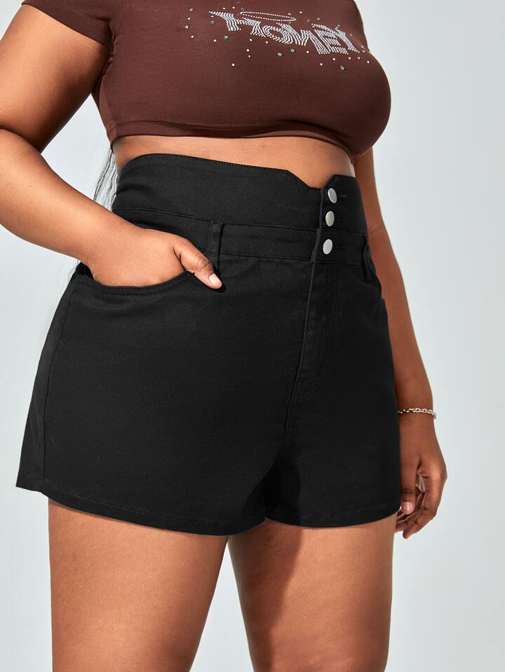 Plus High Waisted Slant Pockets Denim Shorts