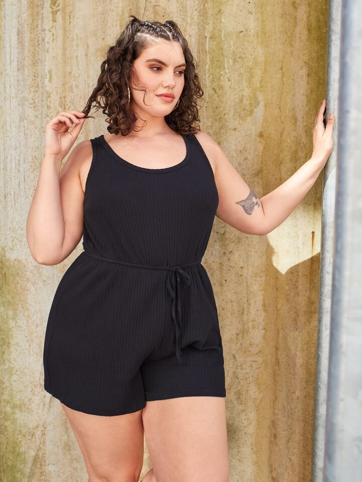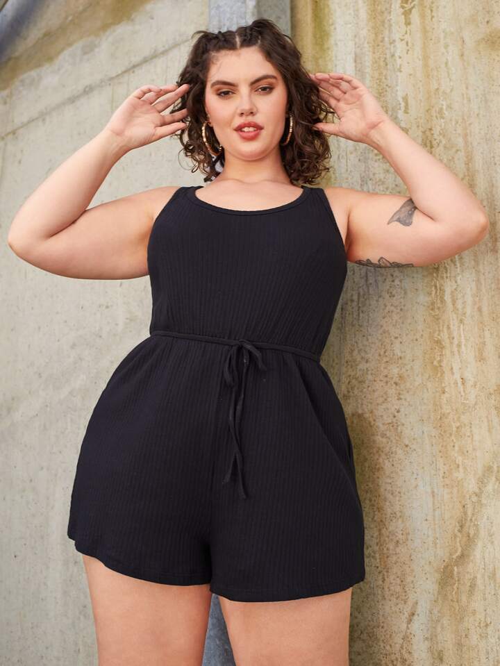Plus Knot Waist Rib-knit Sleep Romper