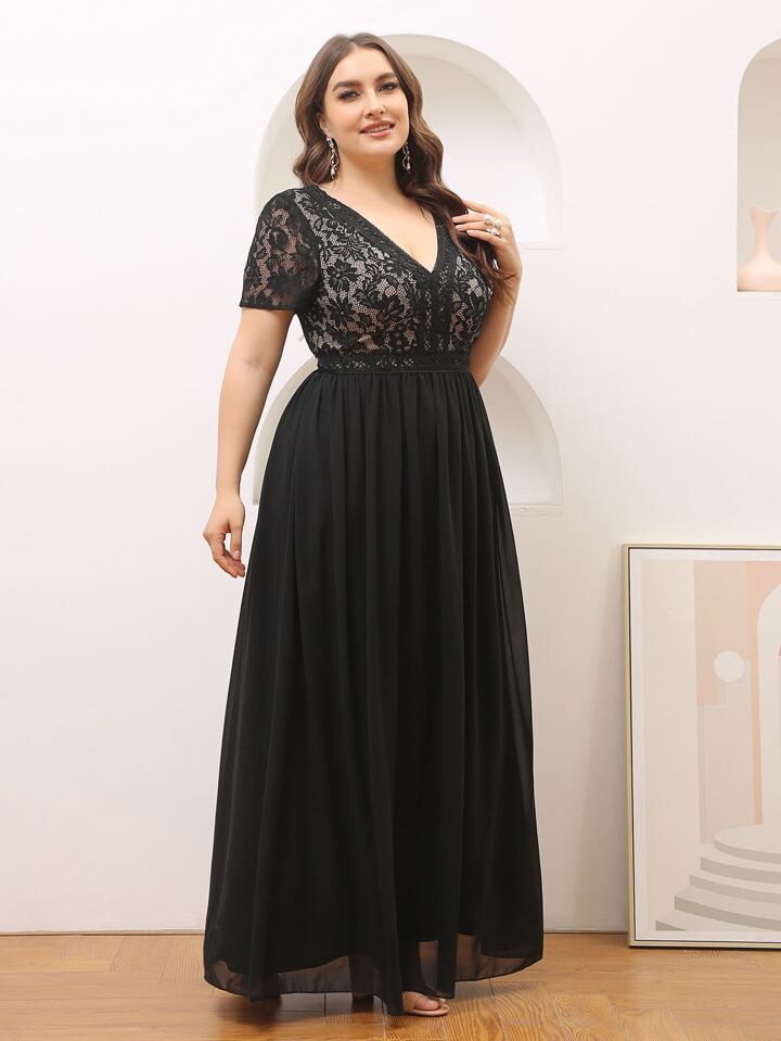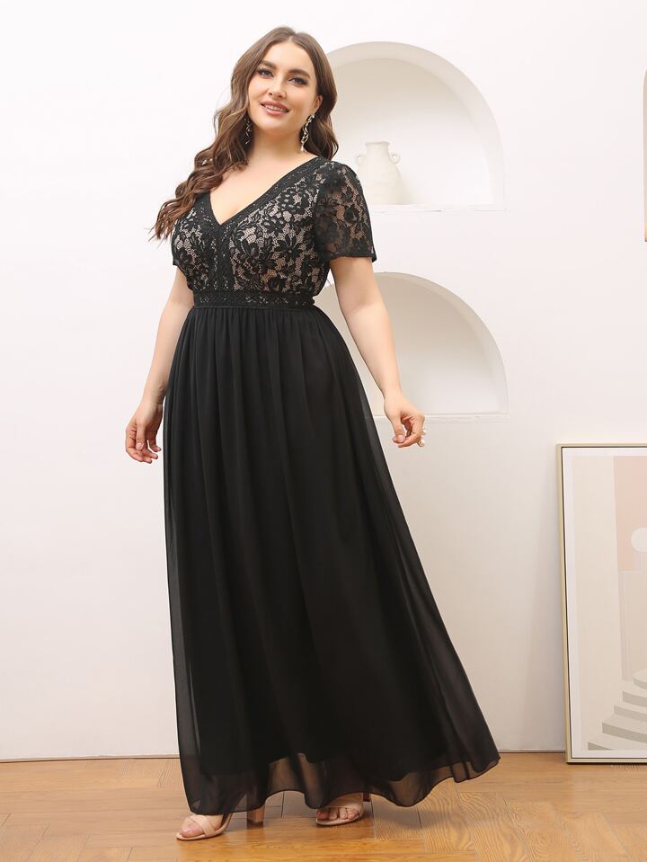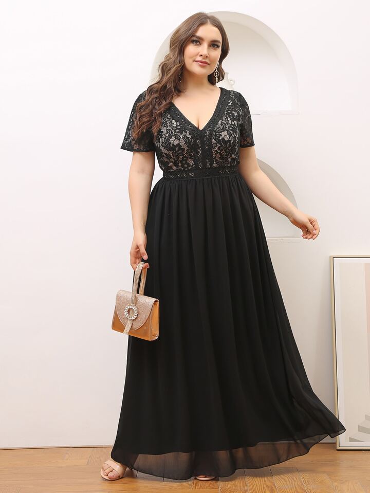 Plus Lace Panel Maxi Chiffon Dress