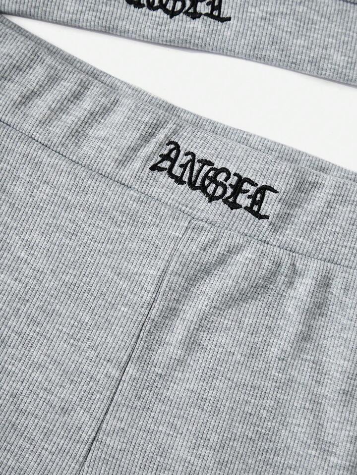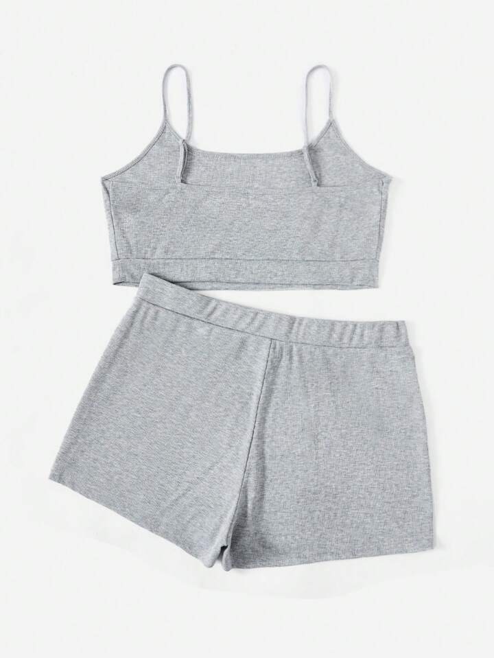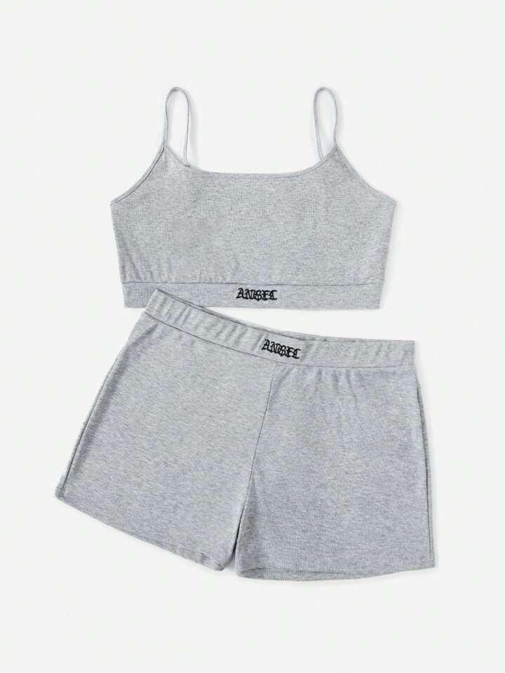 Plus Letter Embroidery Crop Cami Top & Shorts