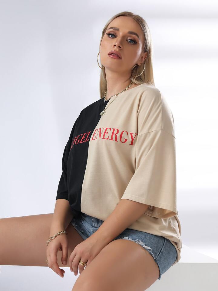 Plus Letter graphic Color Block Tee