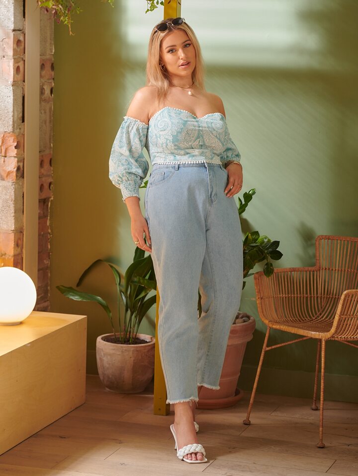 Plus Paisley Print Off The Shoulder Crop Blouse