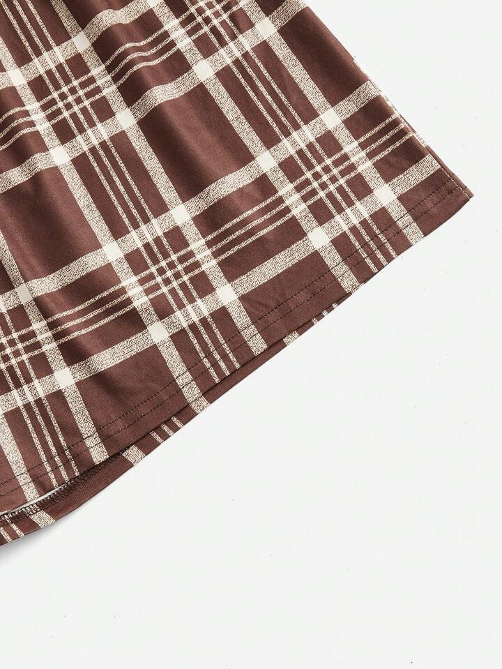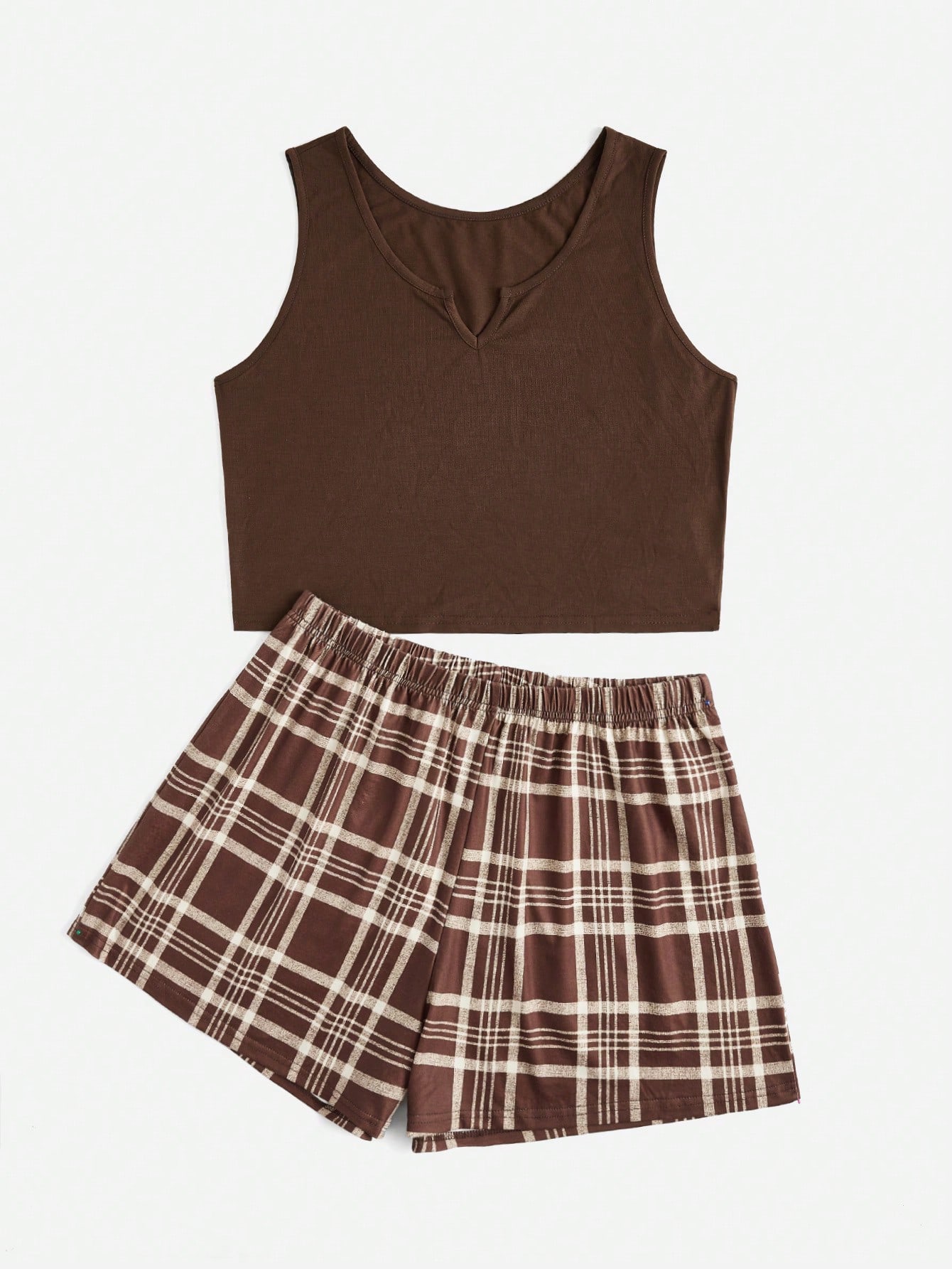 Plus Plaid Print Notched Neckline Tank Top & Shorts PJ Set