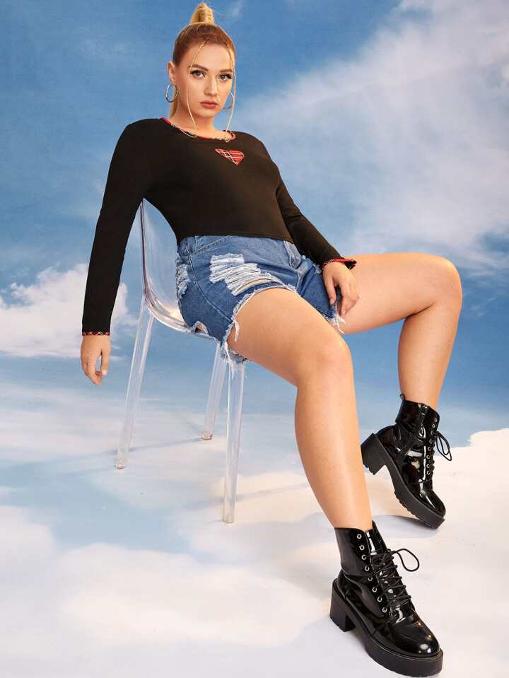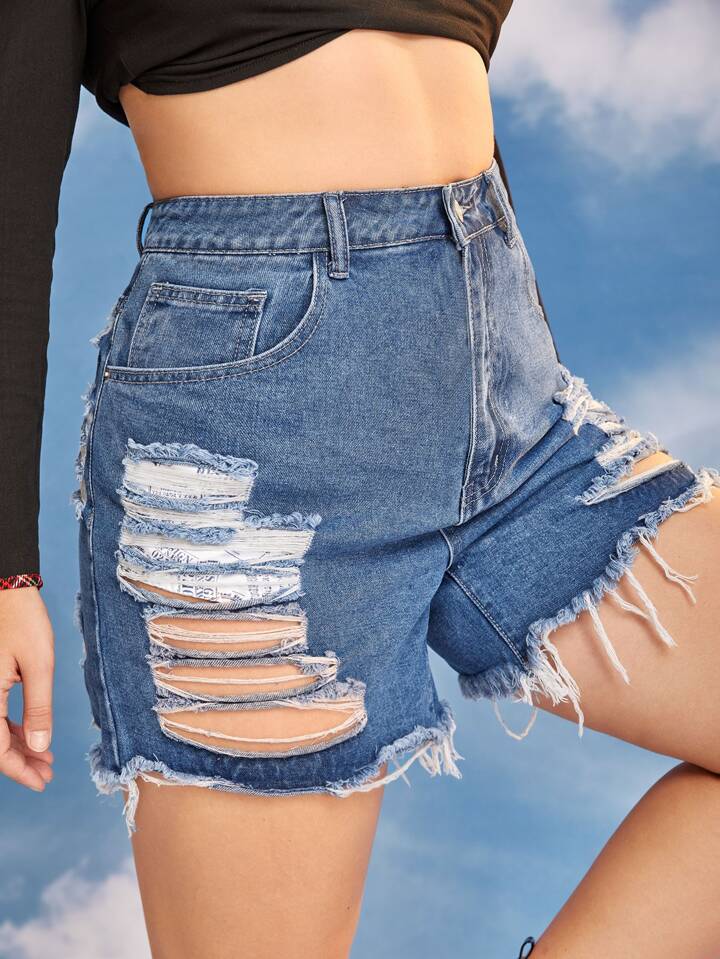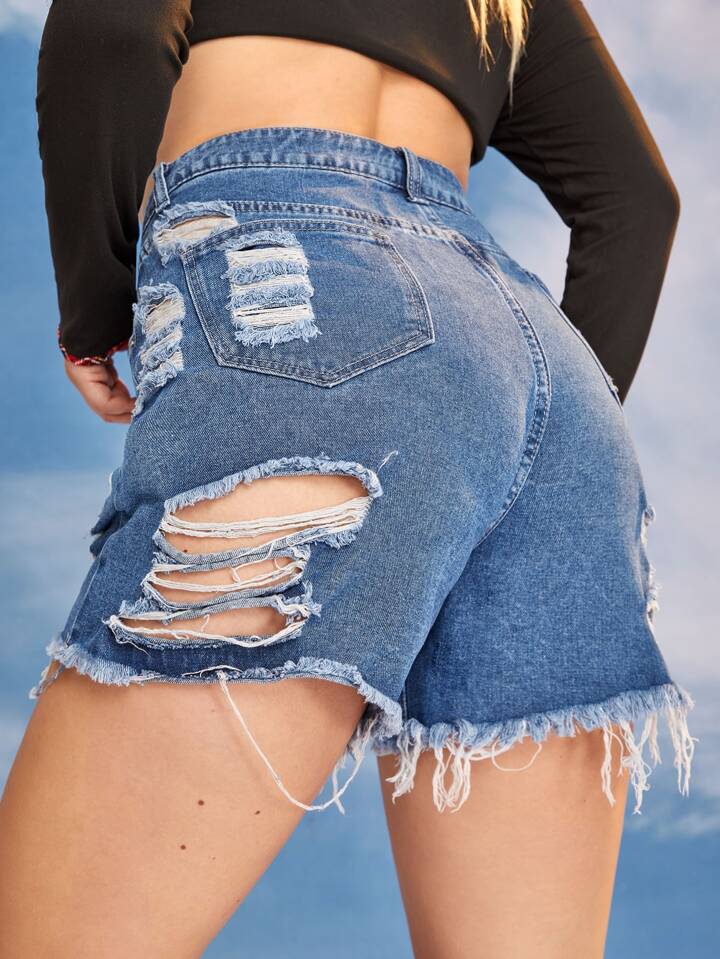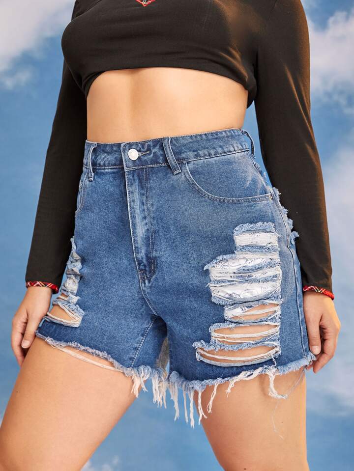 Plus Raw Hem Ripped Denim Shorts