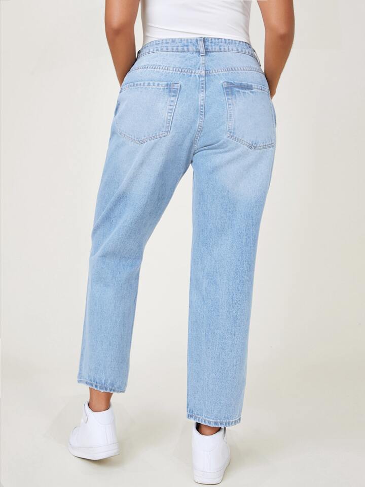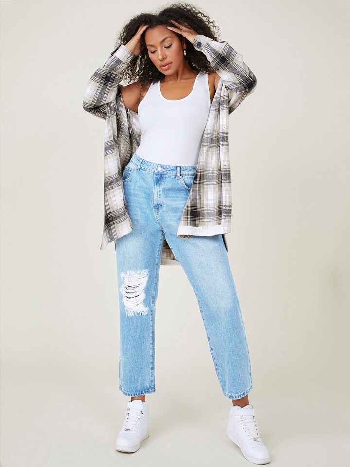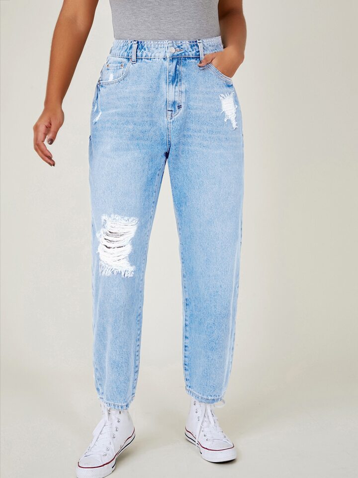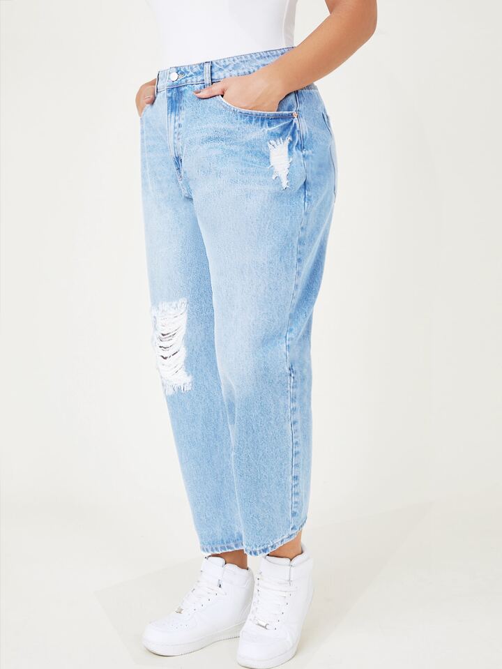 Plus Ripped Detail Mom Jeans