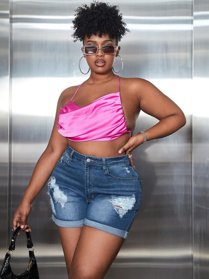 Plus Ripped Roll Up Hem Denim Shorts