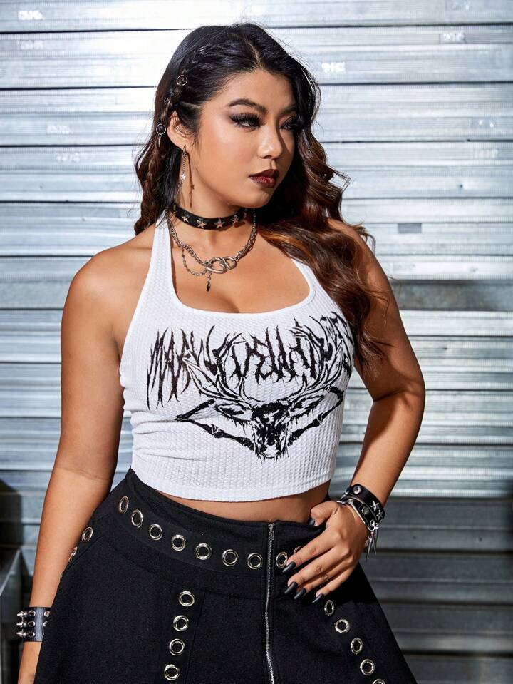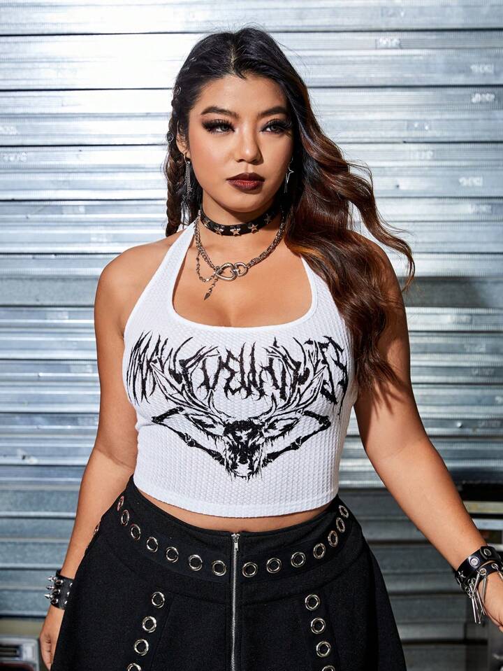 Plus Rock Letter Graphic Halter Top