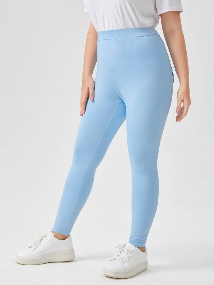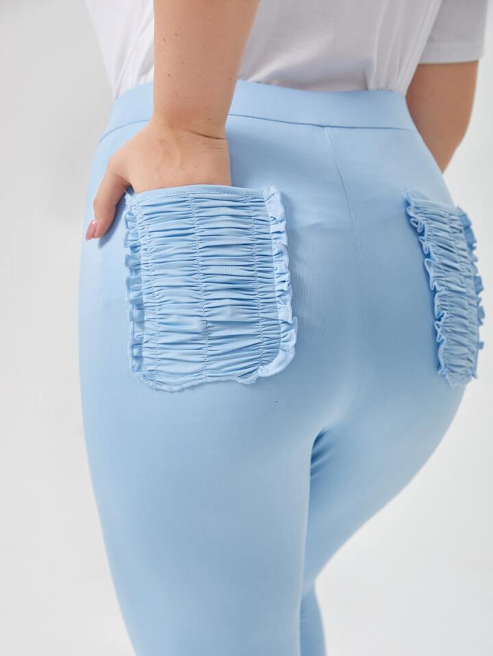 Plus Ruched Frill Detail Pocket Patched Leggings