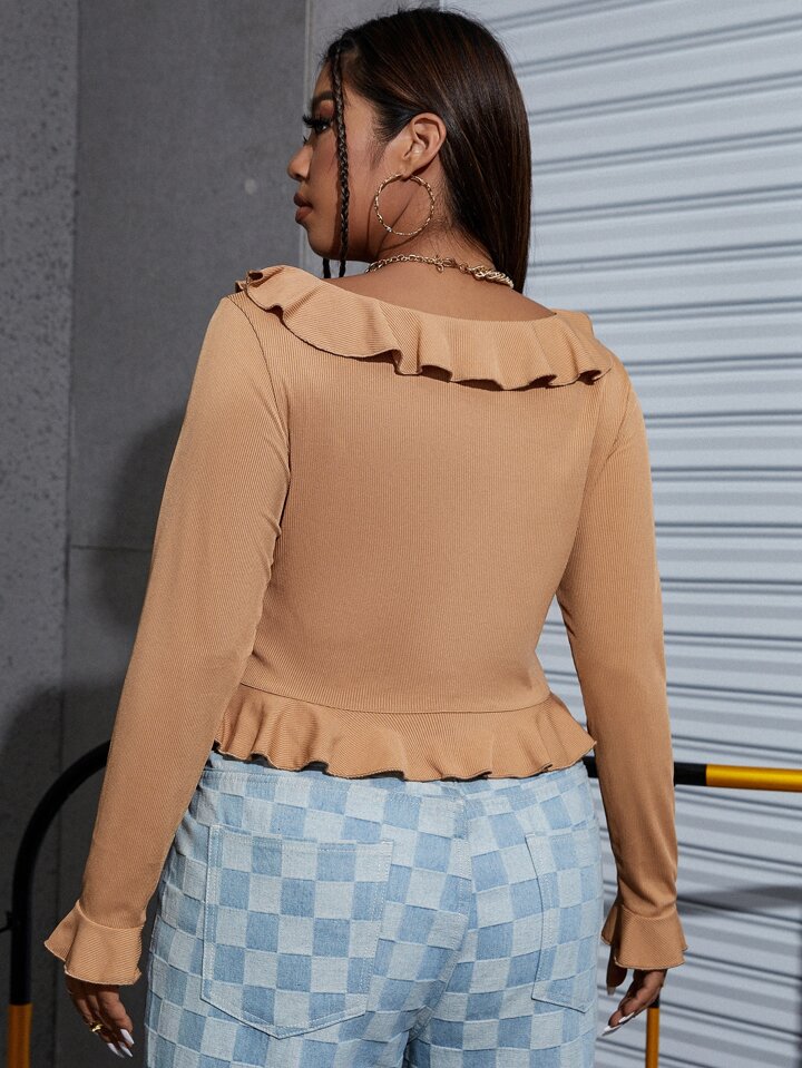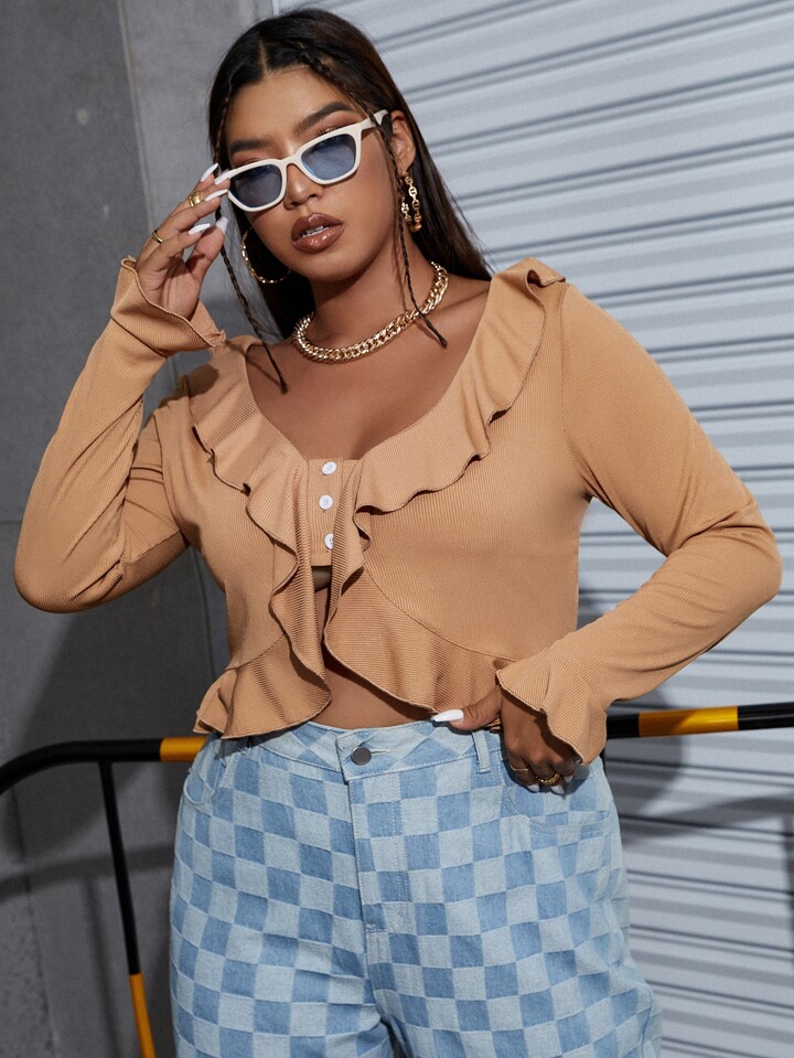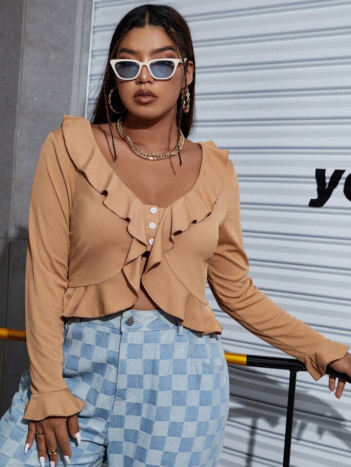 Plus Ruffle Detail Button Front Flounce Sleeve Top