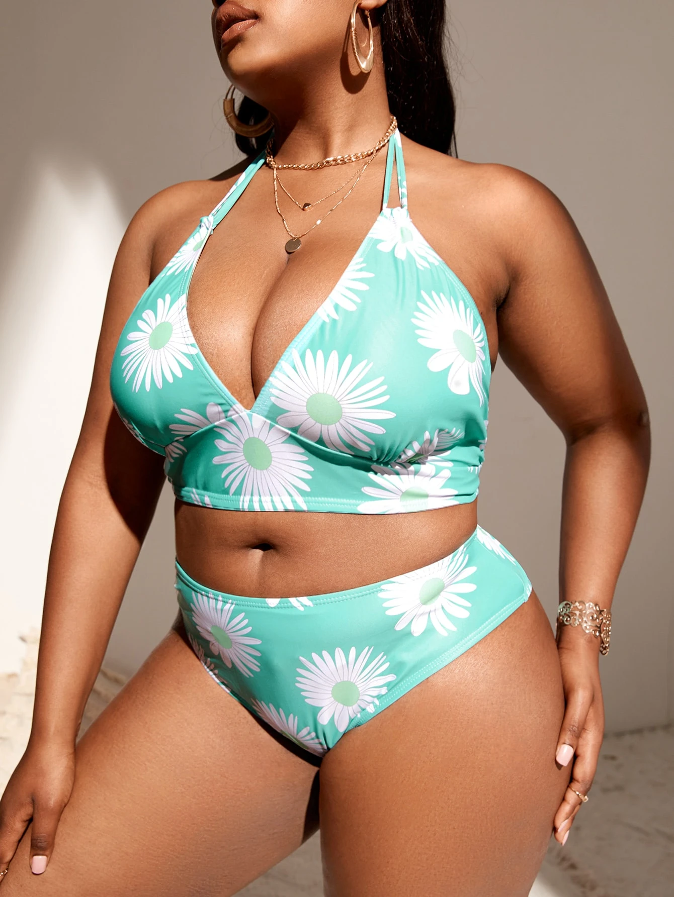 Plus Size Floral Halter Bikini Set Summer Beach