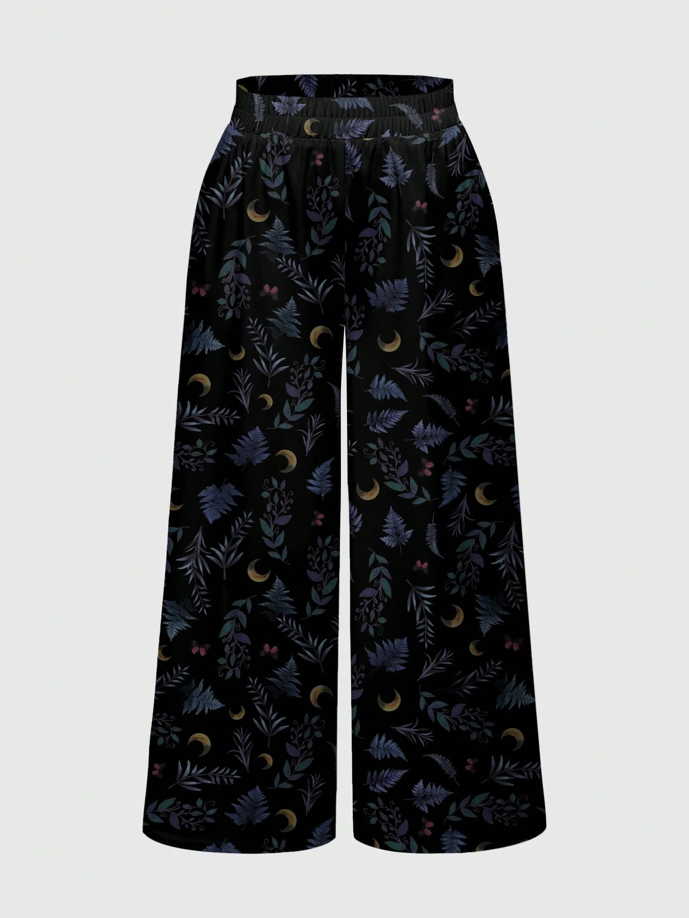 Plus Size Gothic Loose Wide Leg Pants With All-Over Print