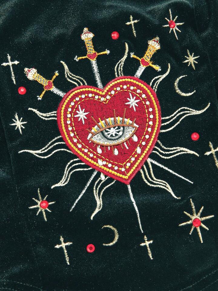 Plus Size Women Gothic Palace Style Halter Top With Crystal Teardrop, Stars & Heart Embroidery Design