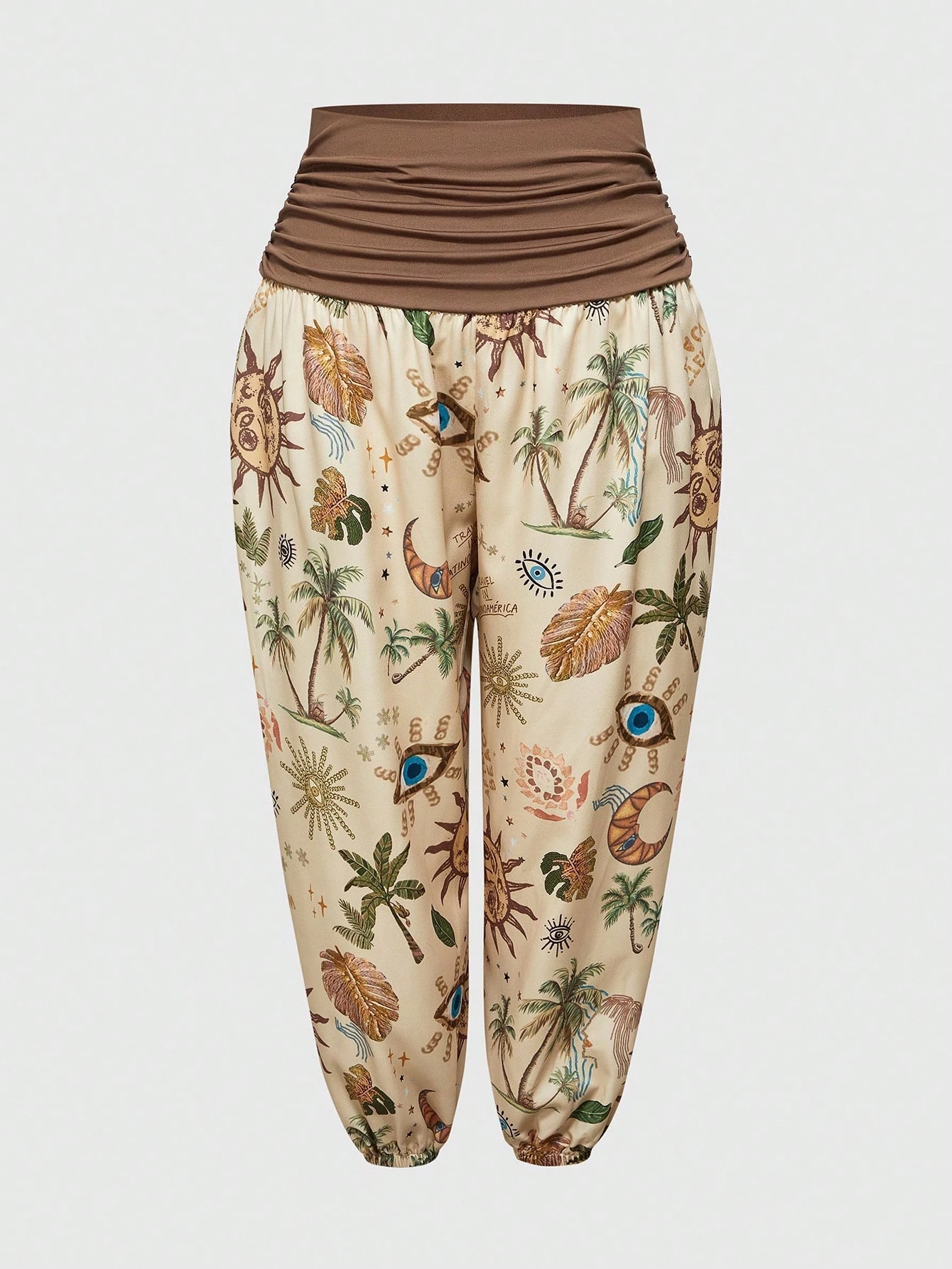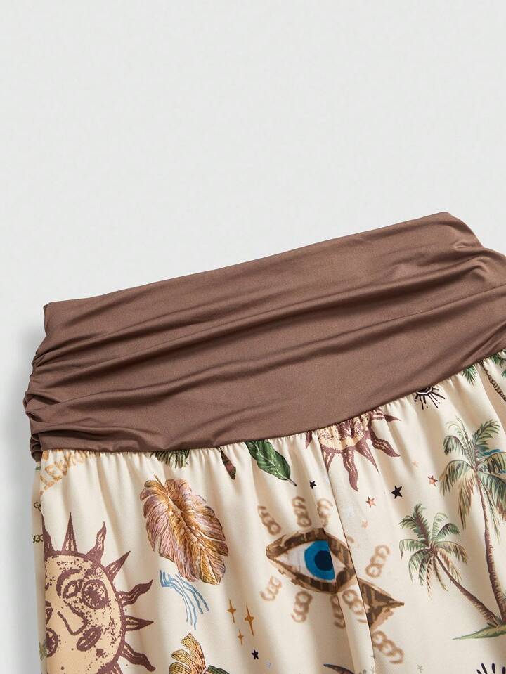 Plus Size Women Hippie Vacation Moon & Star Print Wide Leg Pants