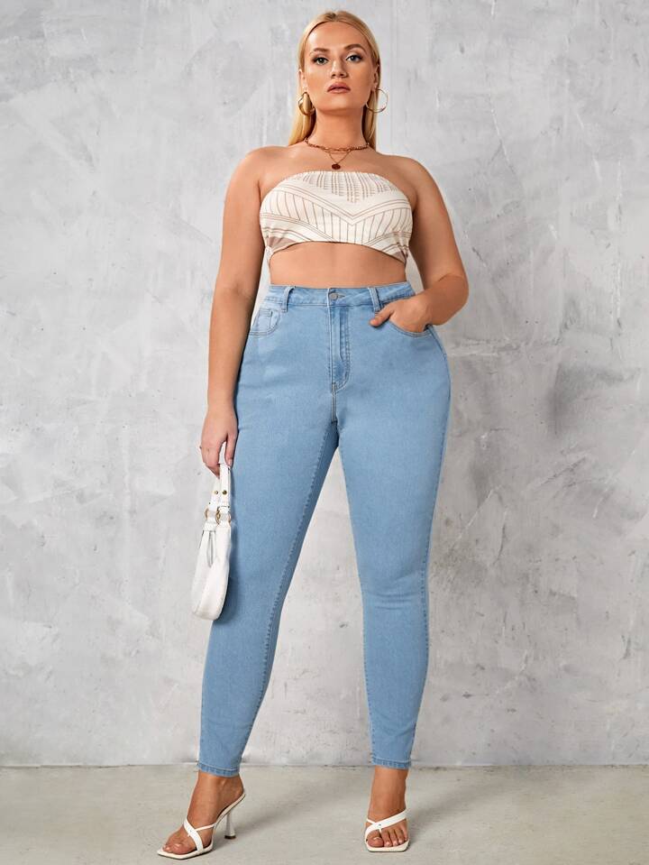 Plus Slant Pockets Skinny Jeans