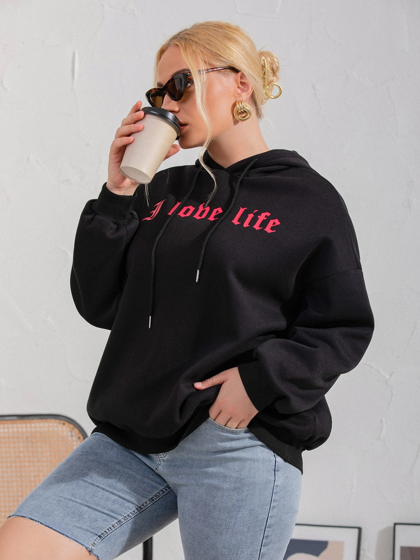 Plus Slogan Graphic Drop Shoulder Drawstring Thermal Hoodie Graduation,Back To School Outfits,Graduation,Teacher Outfits For Women,Back To School