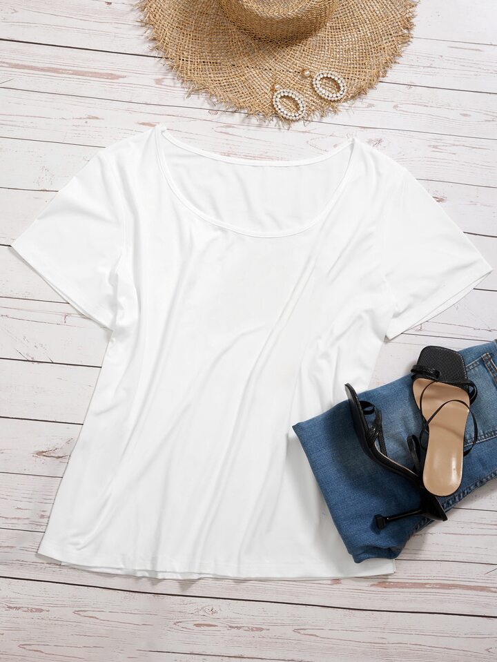 Plus Solid Scoop Neck Tee