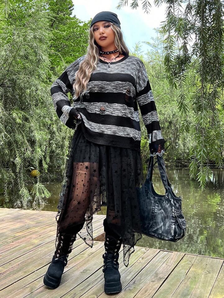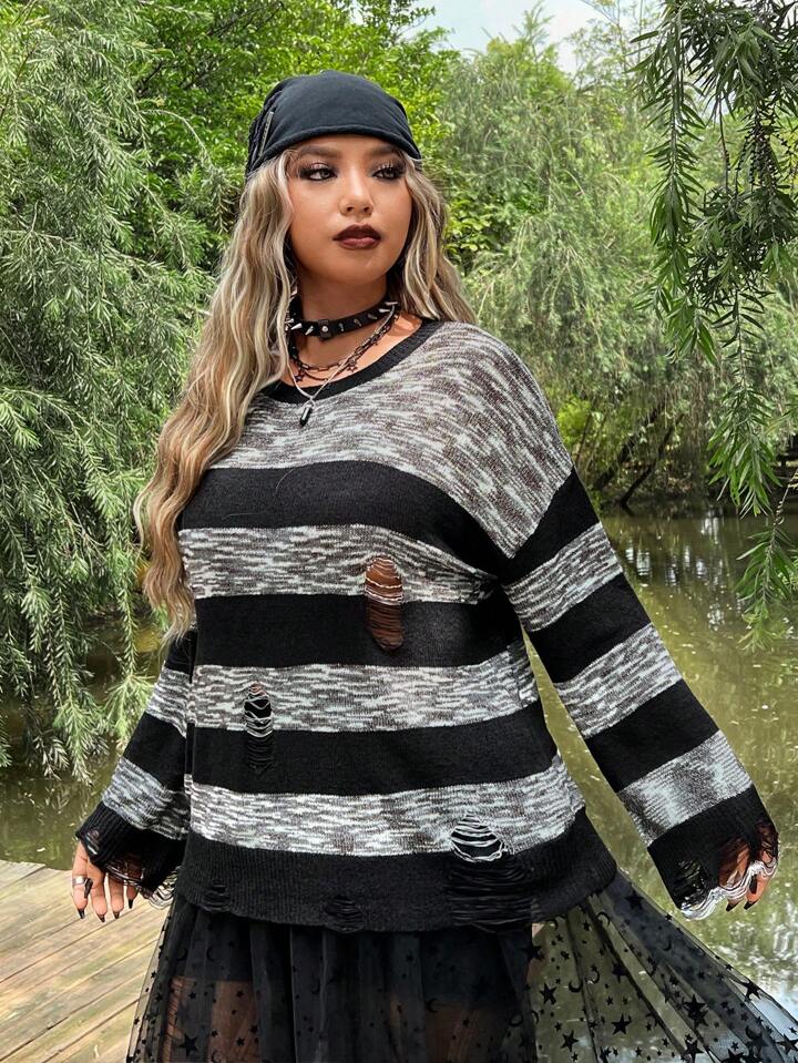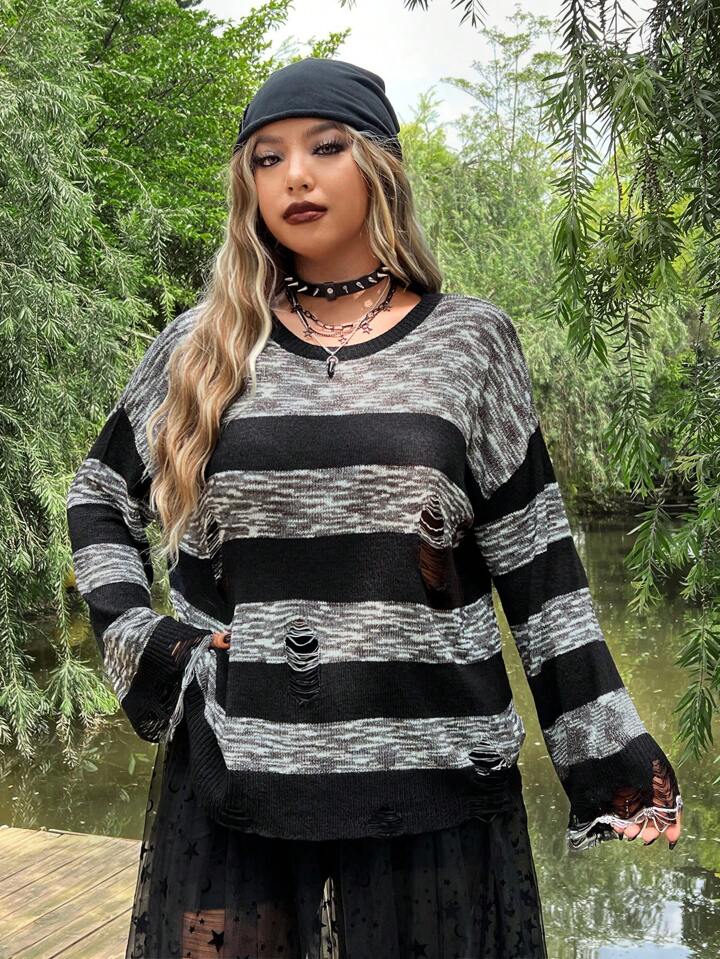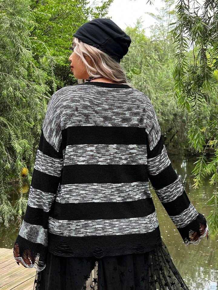 Plus Space Dye Ripped Drop Shoulder Sweater