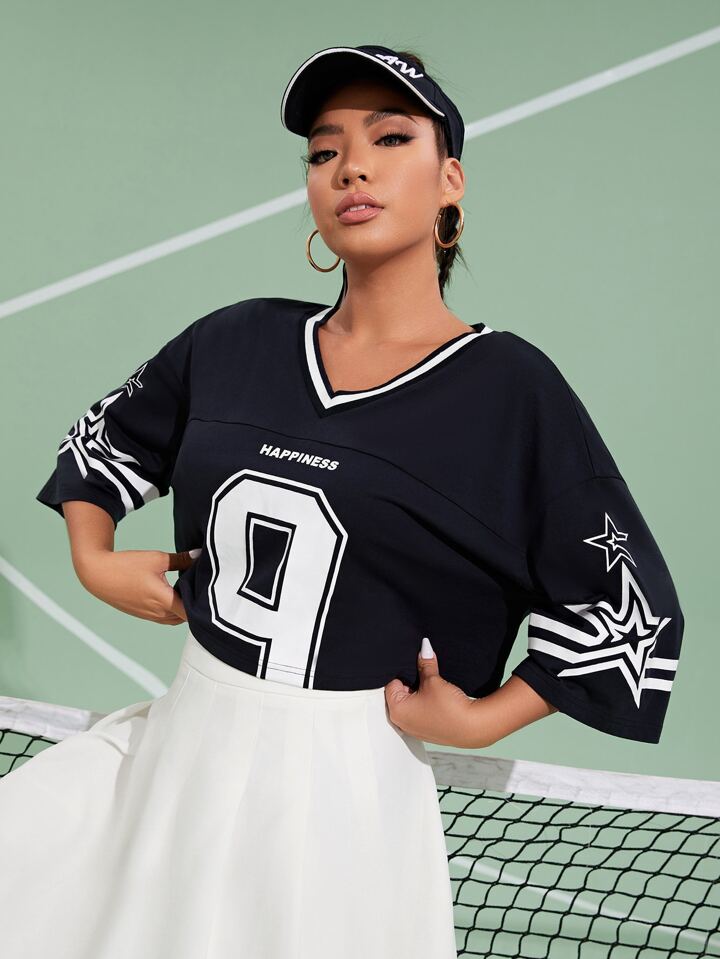 Plus Star And Letter Graphic Tee & Pleated Skirt