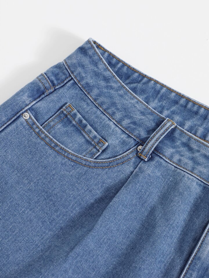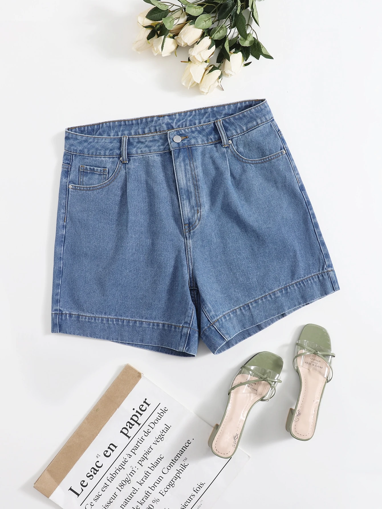 Plus Straight Leg Denim Shorts