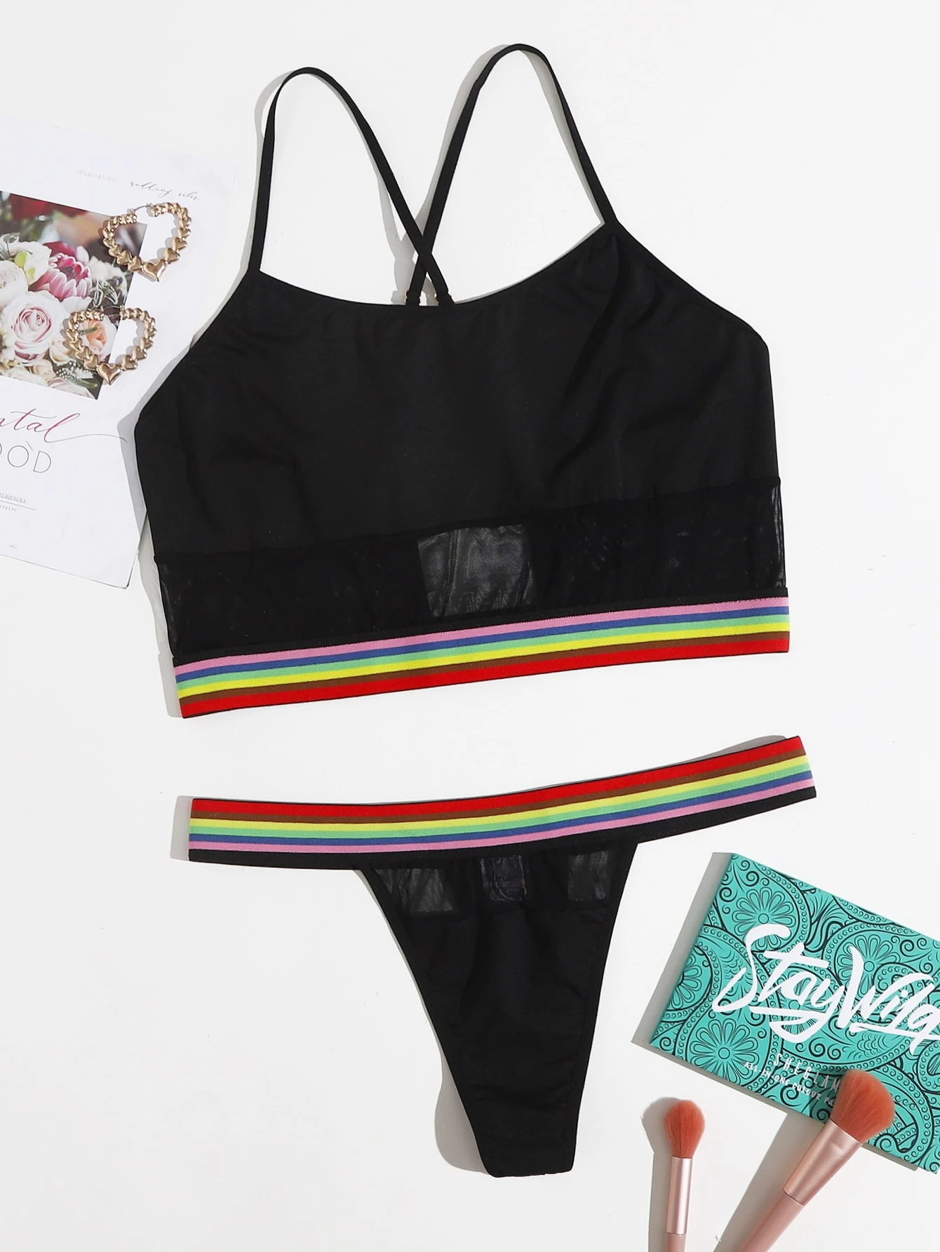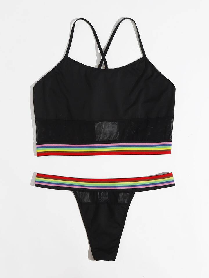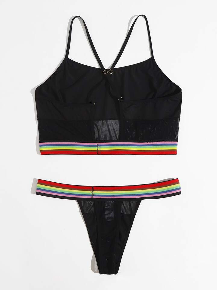 Plus Stripe Tape Lingerie Set