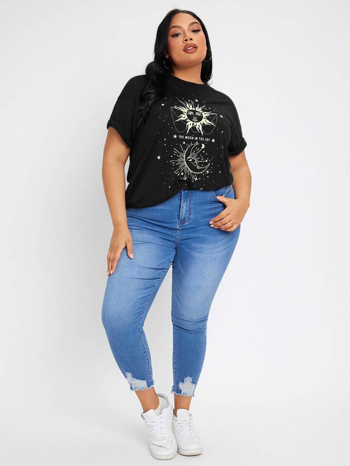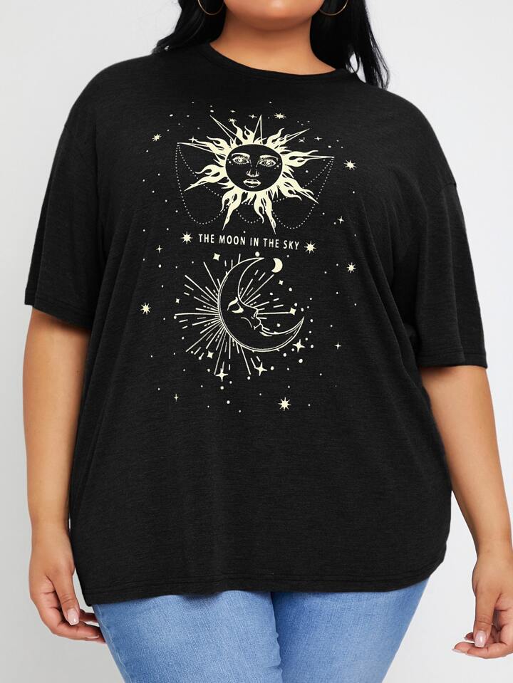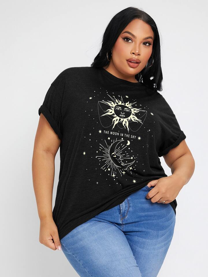 Plus Sun & Moon Print Roll Up Sleeve Tee