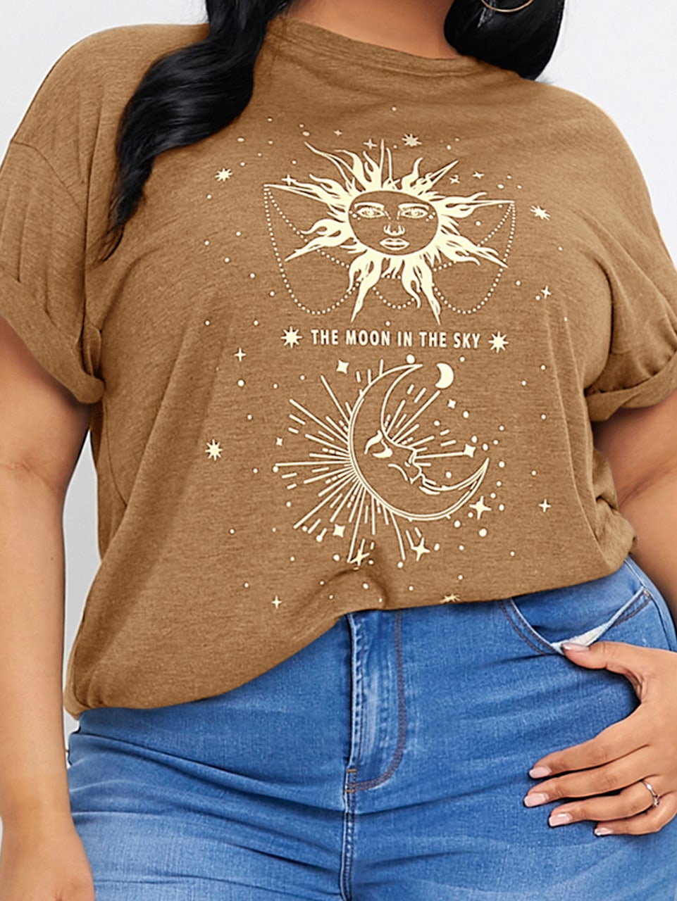 Plus Sun & Moon Print Roll Up Sleeve Tee