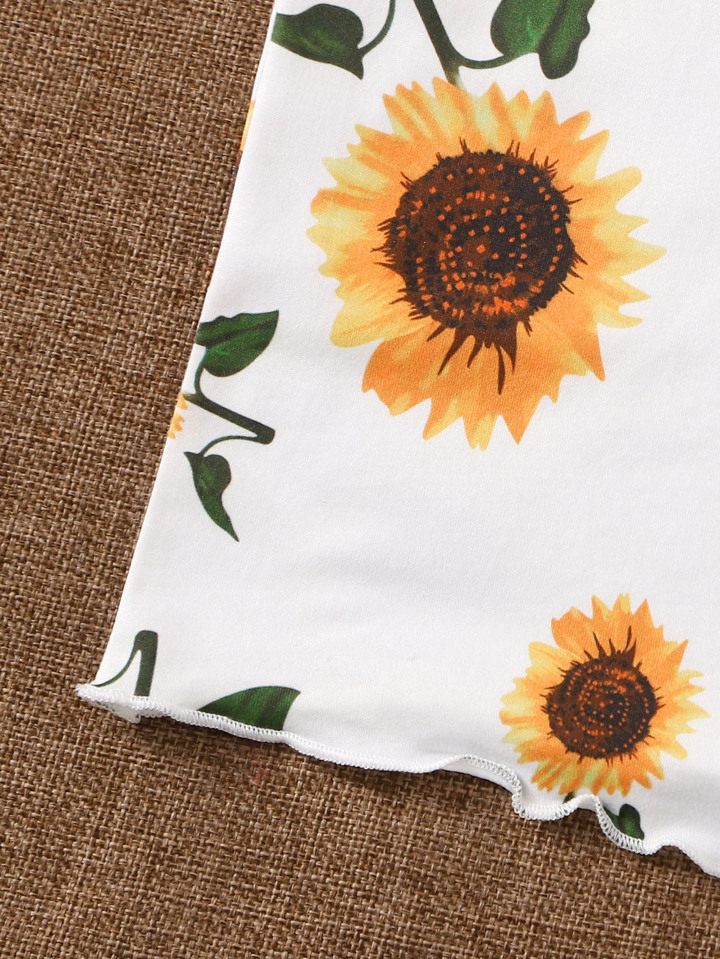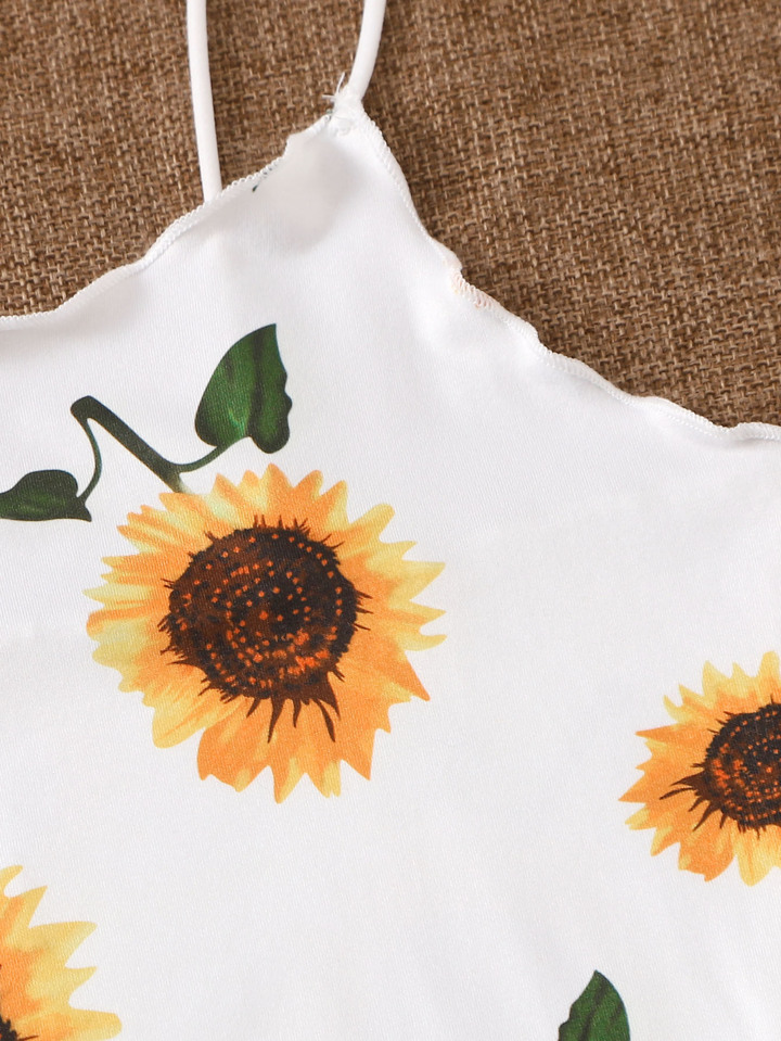 Plus Sunflower Print Lettuce Trim Cami Dress