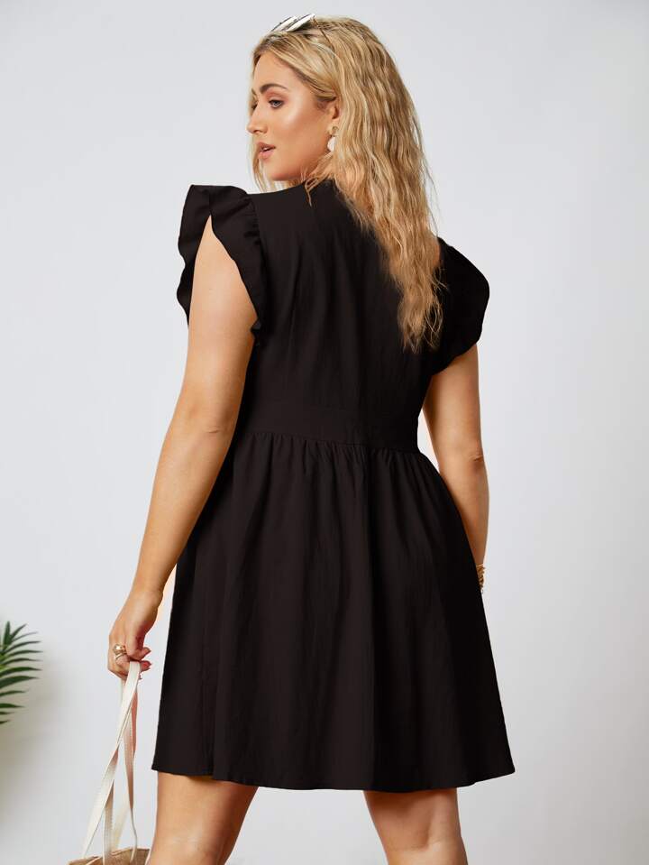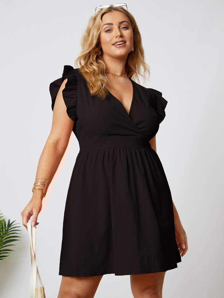 Plus Surplice Front Ruffle Cuff Dress