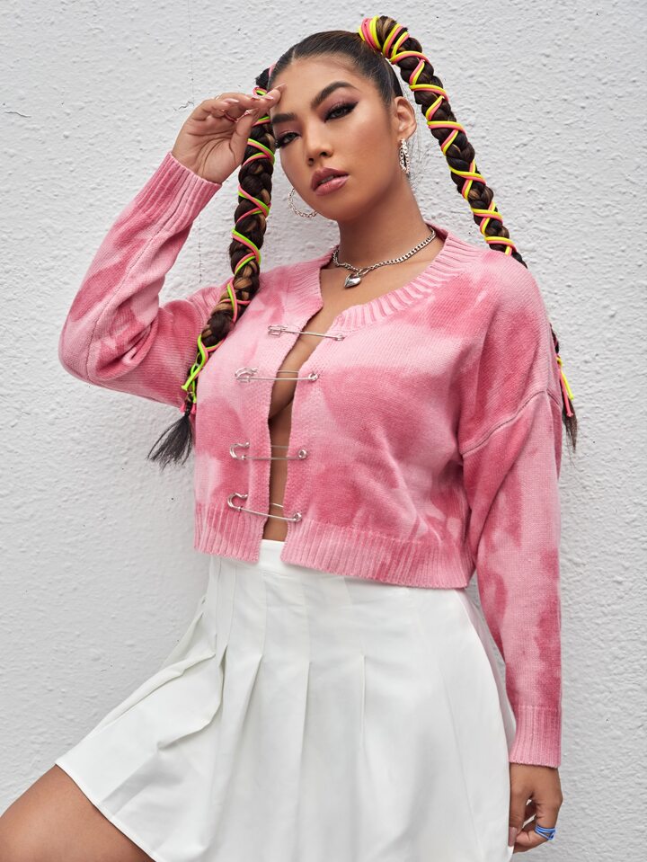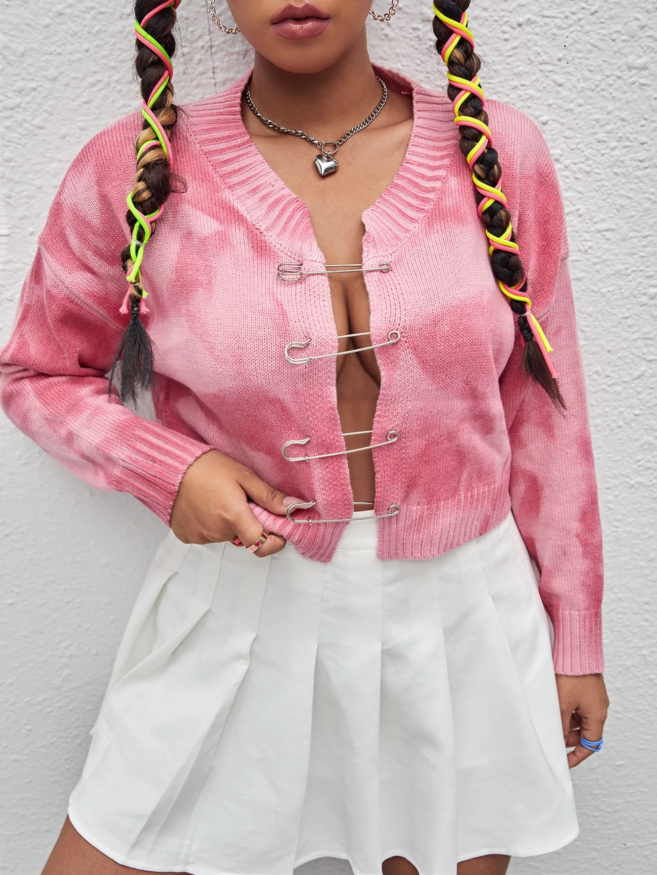 Plus Tie Dye Drop Shoulder Clip Cardigan