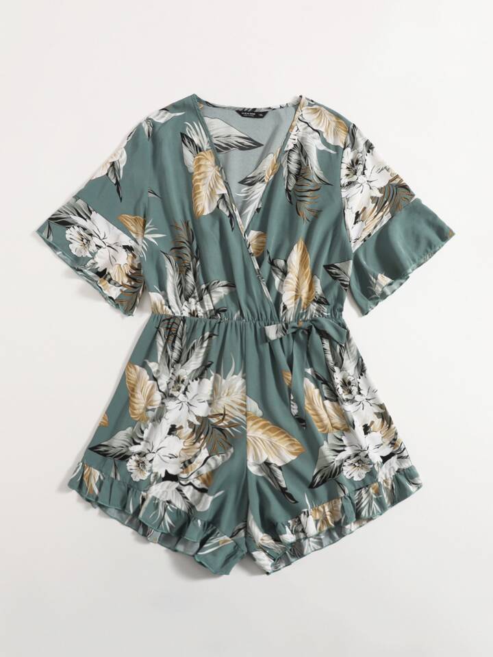 Plus Tropical Print Ruffle Hem Romper