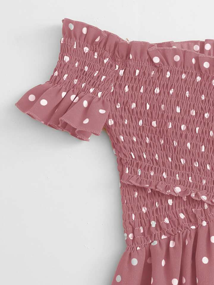 Polka Dot Criss Cross Shirred Bodice Bardot Dress