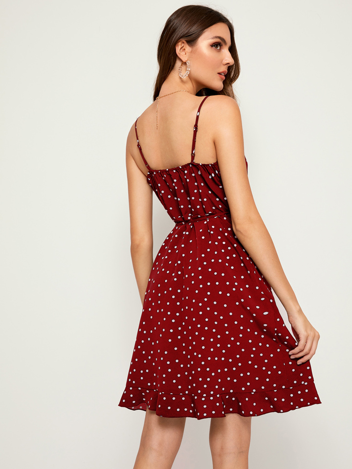 Polka Dot Self Tie Wrap Cami Dress