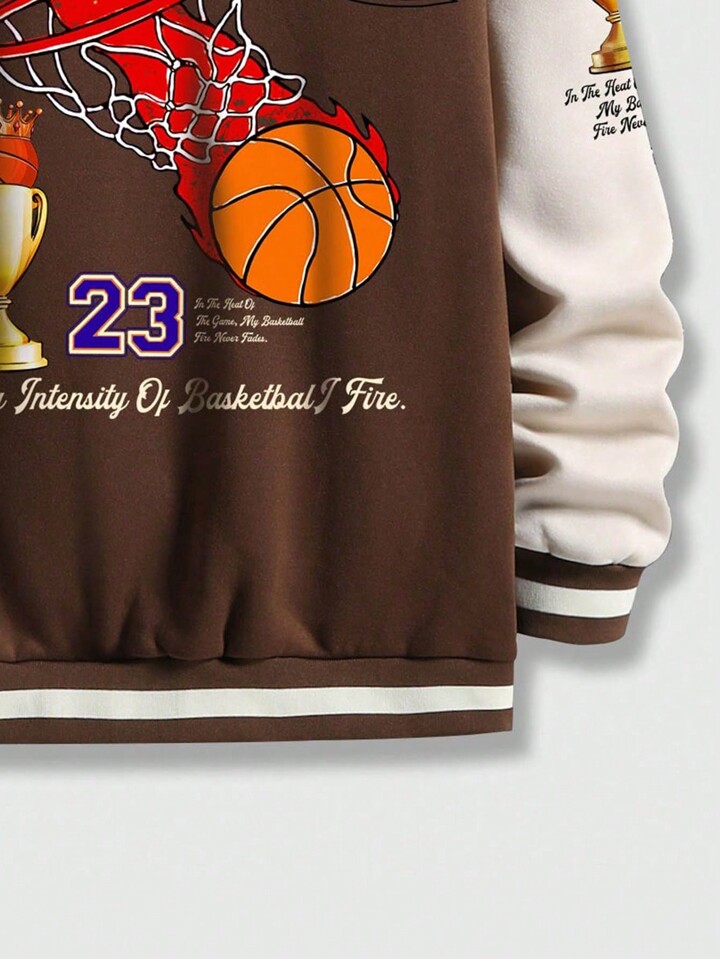 Prep Guys Basketball & Slogan Graphic Two Tone Varsity Jacket Without Hoodie