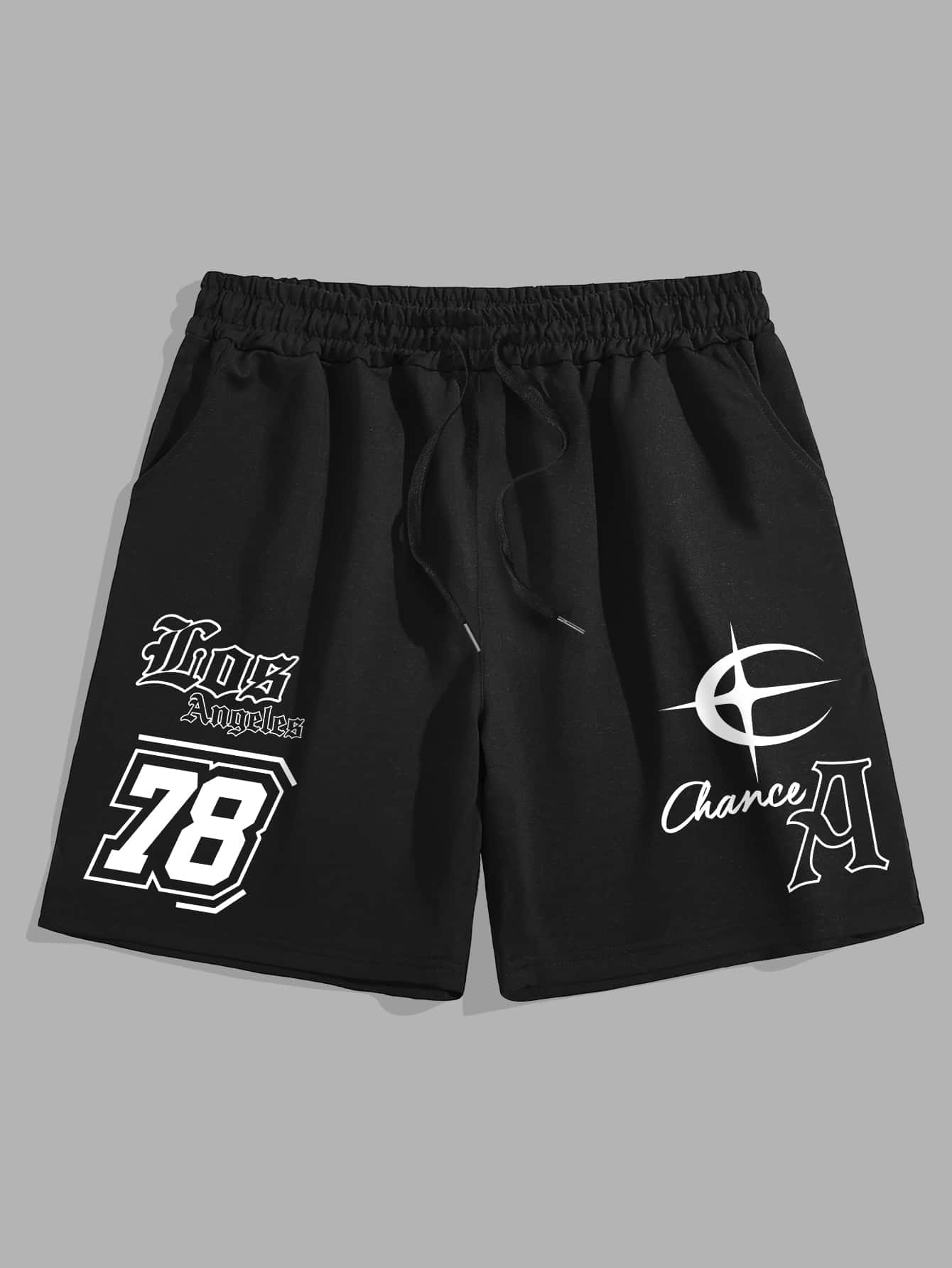 Prep Guys Letter Graphic Drawstring Waist Shorts