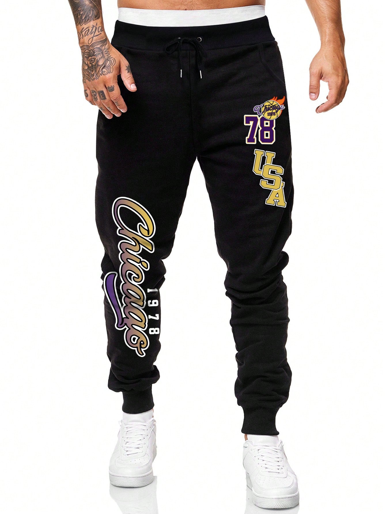 Prep Guys Letter Graphic Drawstring Waist Sweatpants