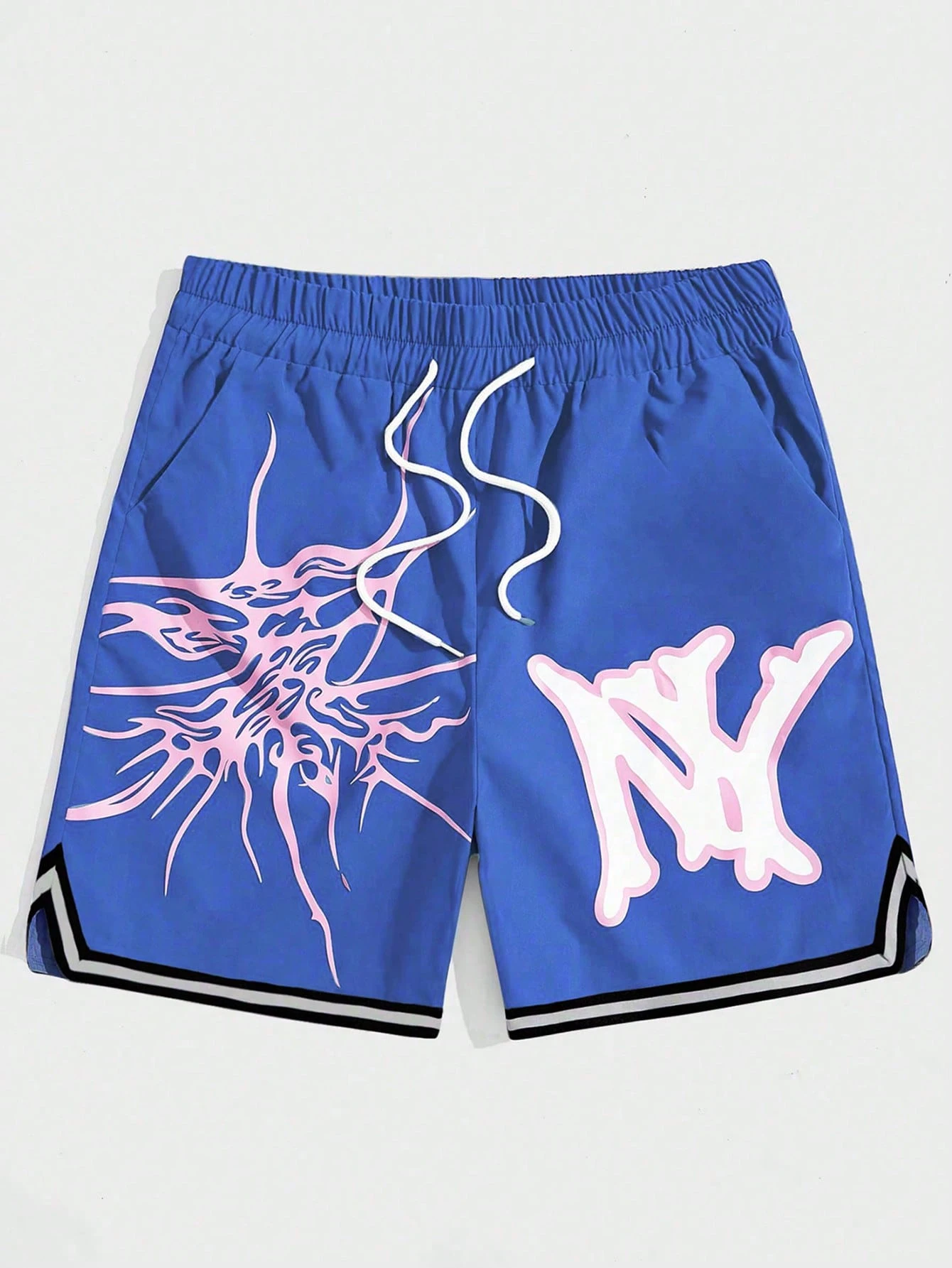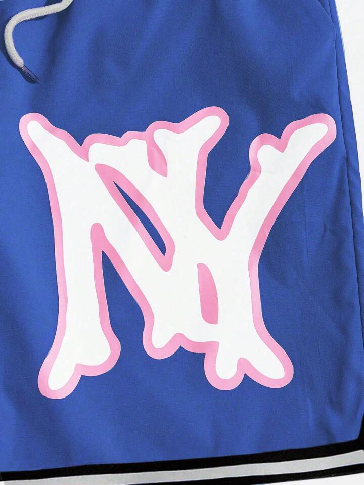 Prep Guys Letter Graphic Striped Trim Drawstring Waist Shorts
