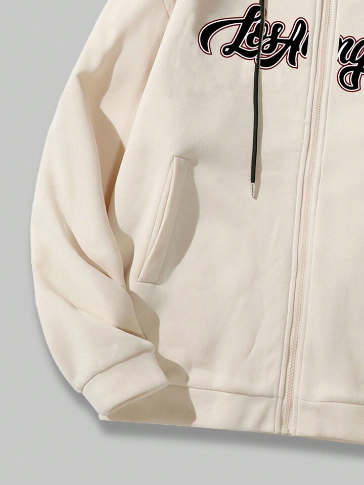 Prep Guys Letter Graphic Zip Up Drawstring Thermal Hoodie