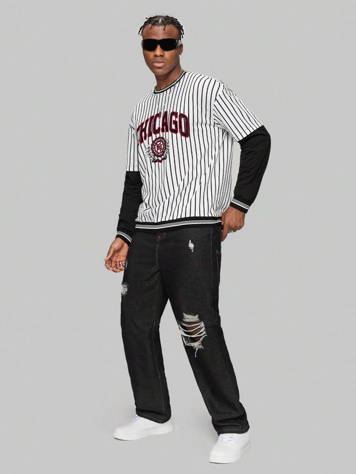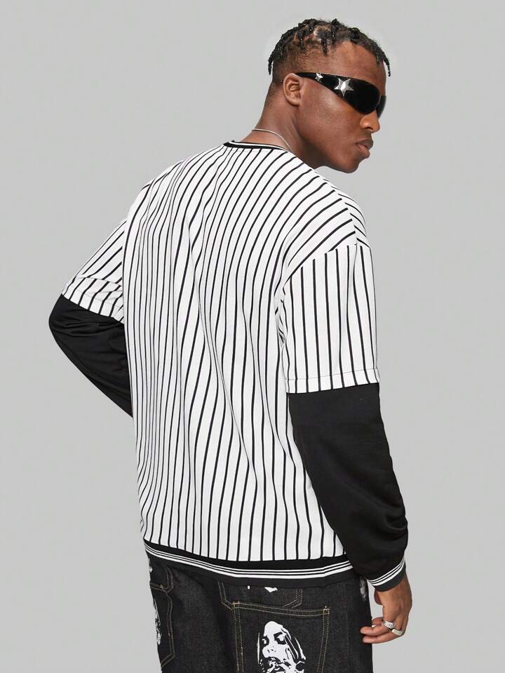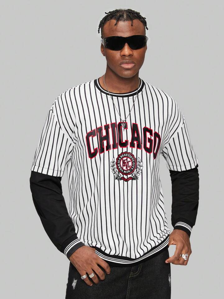 Prep Guys Striped Letter Graphic Drop Shoulder 2 In 1 Sweatshirt