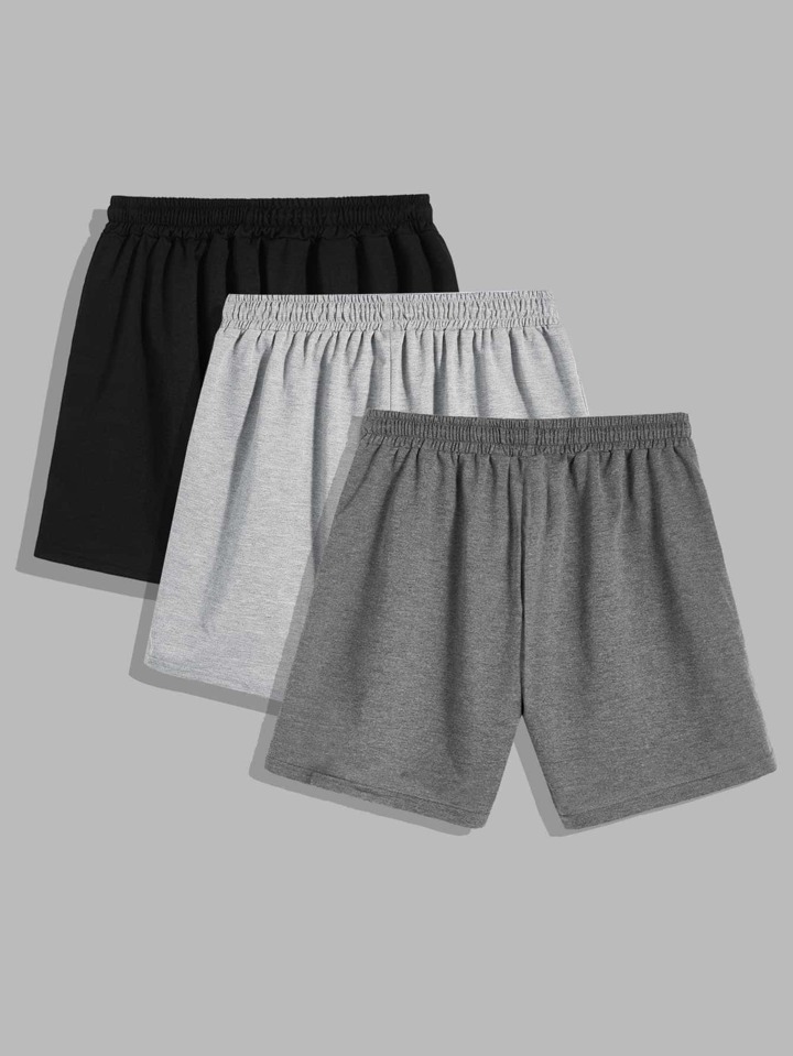 Prep Men 3pcs Solid Hidden Pocket Drawstring Shorts, School
