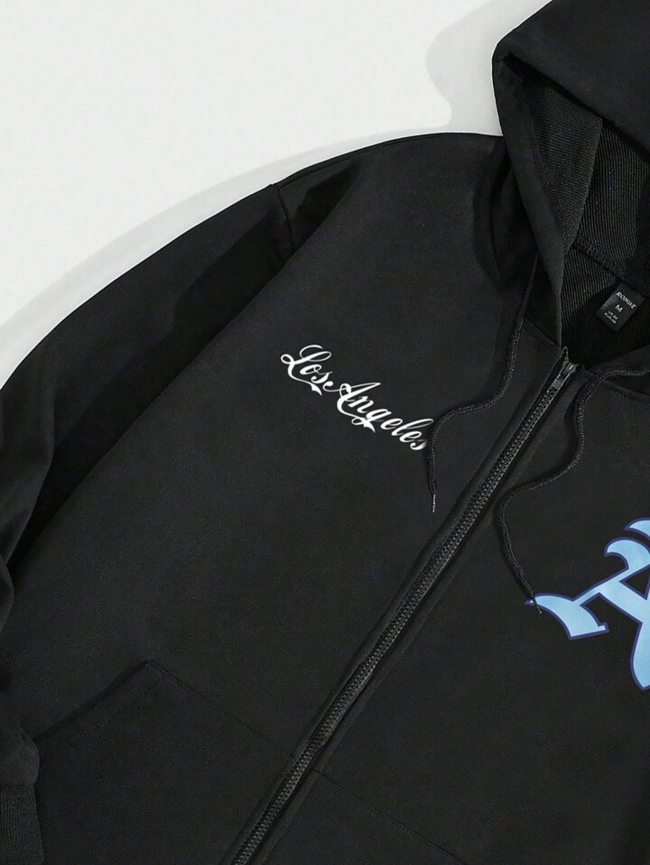 Prep Men Letter Graphic Drawstring Hoodie