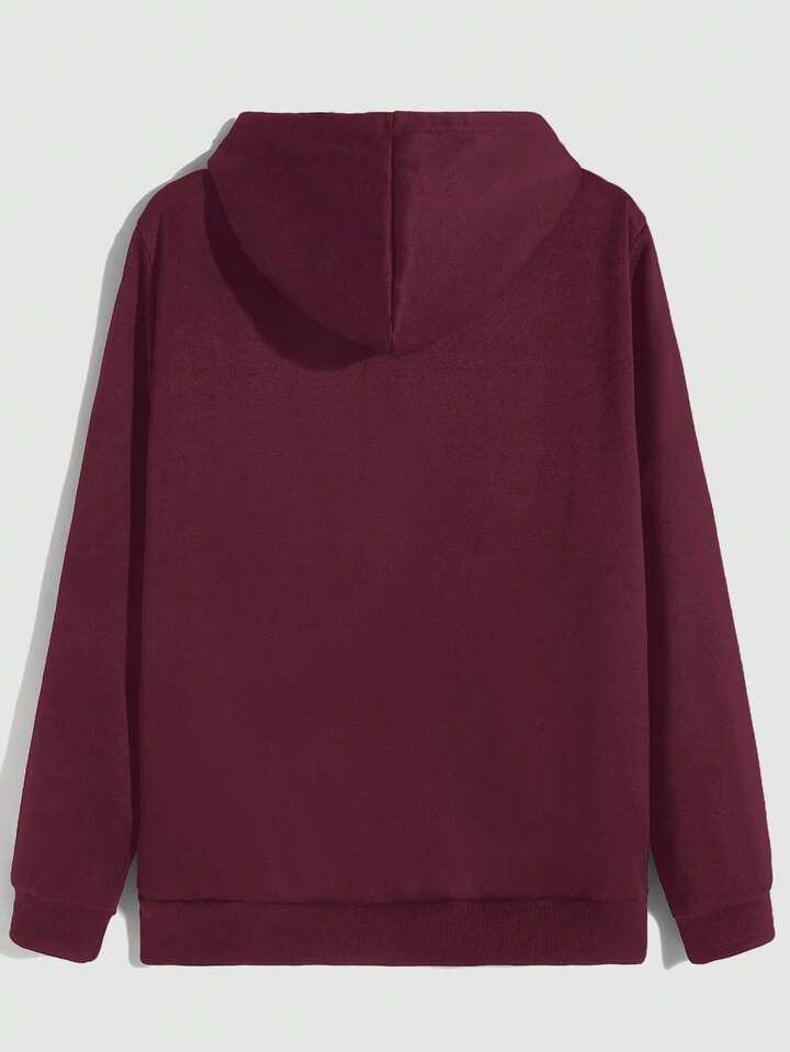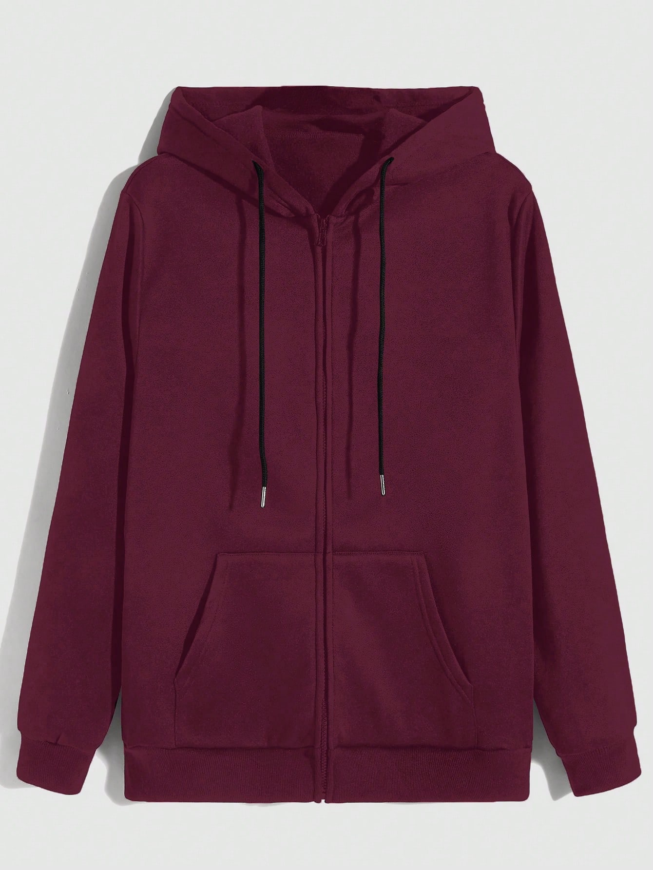 Prep Men Solid Color Zipper Closure Drawstring Hoodie