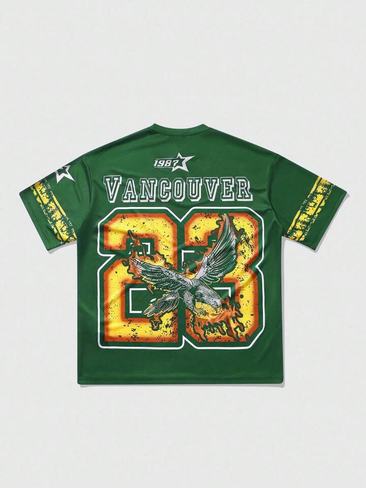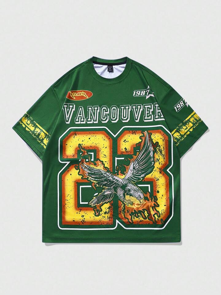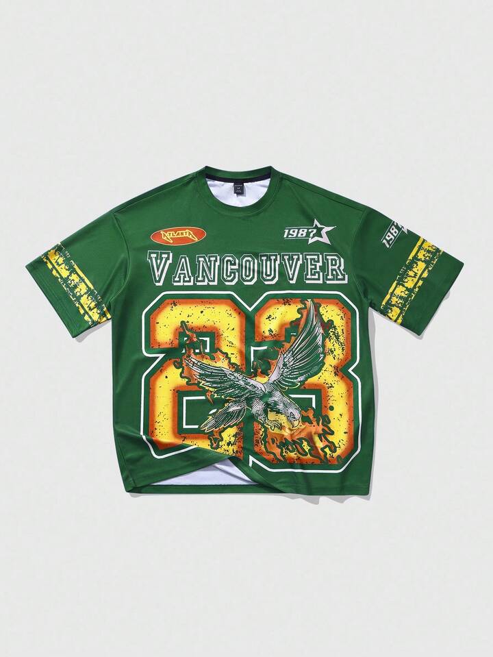 Prep Men's 23# Graphic Print Short Sleeve T-Shirt, Sporty Tee, Street Vintage Style